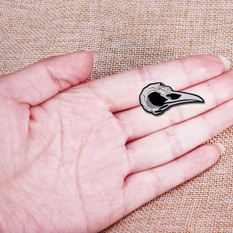 Эмалированные металлические значки Dark Raven ворона Голова Череп Птица Скелет заколка на лацкан броши на куртки джинсы модные ювелирные изделия аксессуары