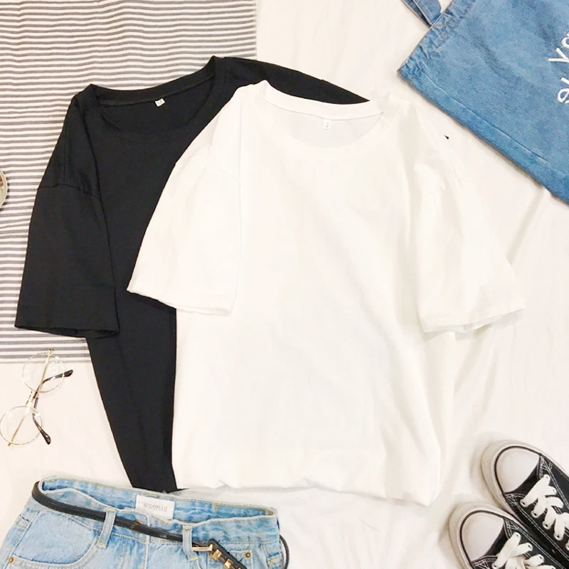 Однотонная Повседневная Свободная футболка, корейские женские топы ...