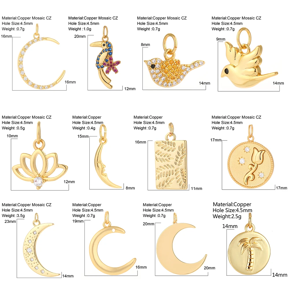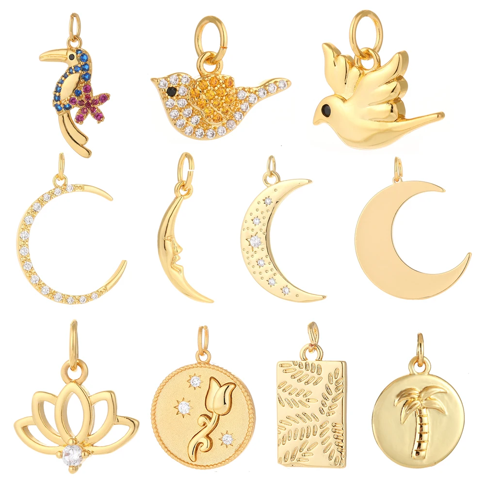 Милые Подвески в виде Луны, цветка, птицы для изготовления ювелирных изделий, сделай сам, серьги, браслет, ожерелье, золотые подвески, медный циркон, смола