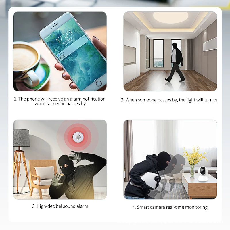 [Беспроводные уведомления]-Получайте мгновенные оповещения через смартфон или ноутбук, если движение обнаружено в вашем доме неожиданно.