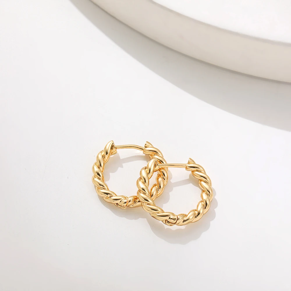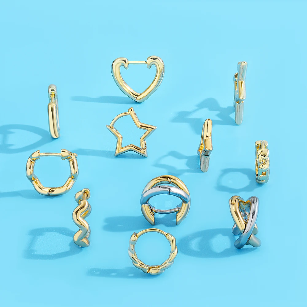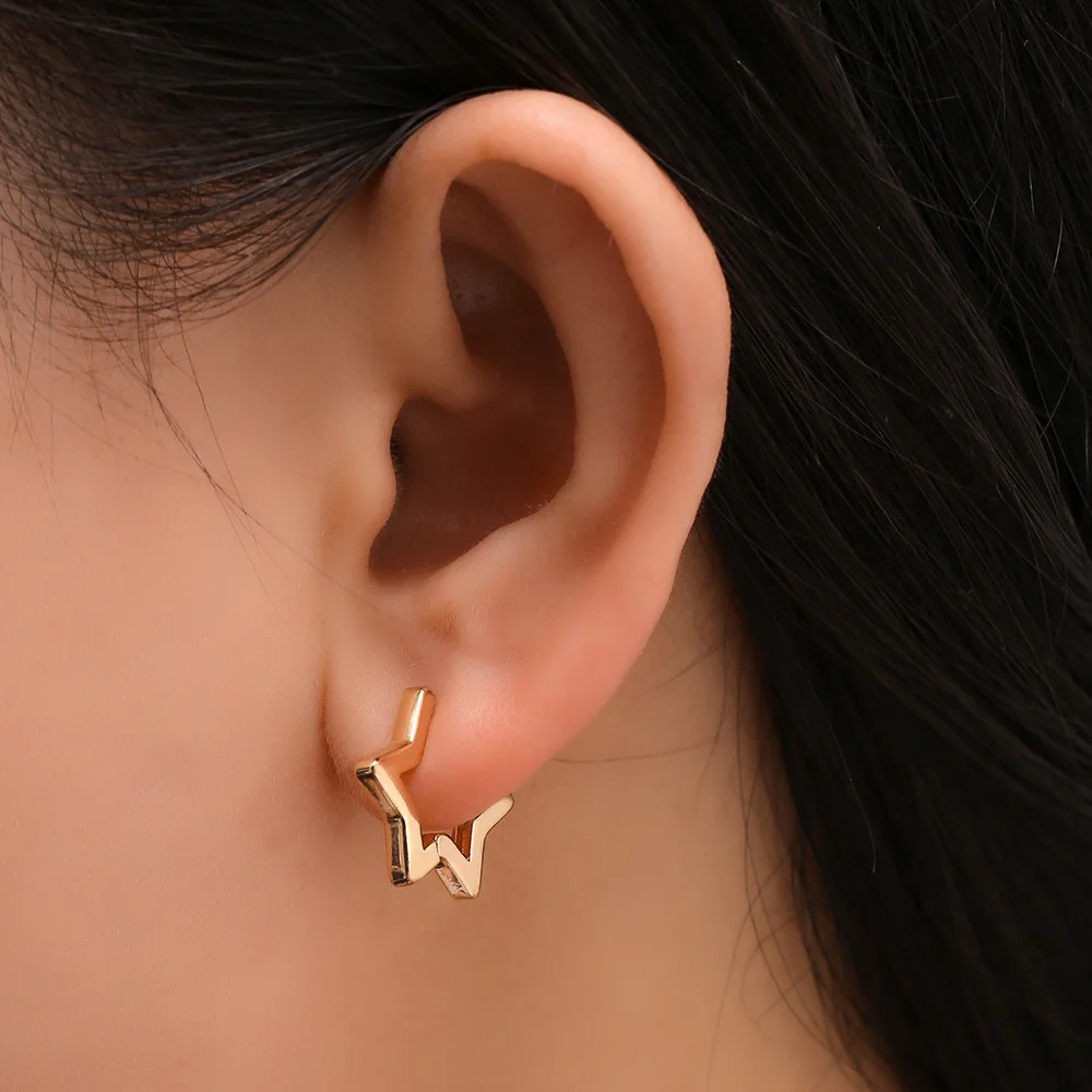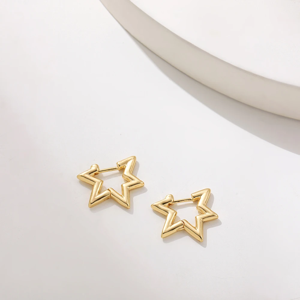 Серьги-кольца женские Геометрические, круглые ювелирные украшения золотого цвета с перекрестной витой маленькой пряжкой для хряща уха, сердце, звезда