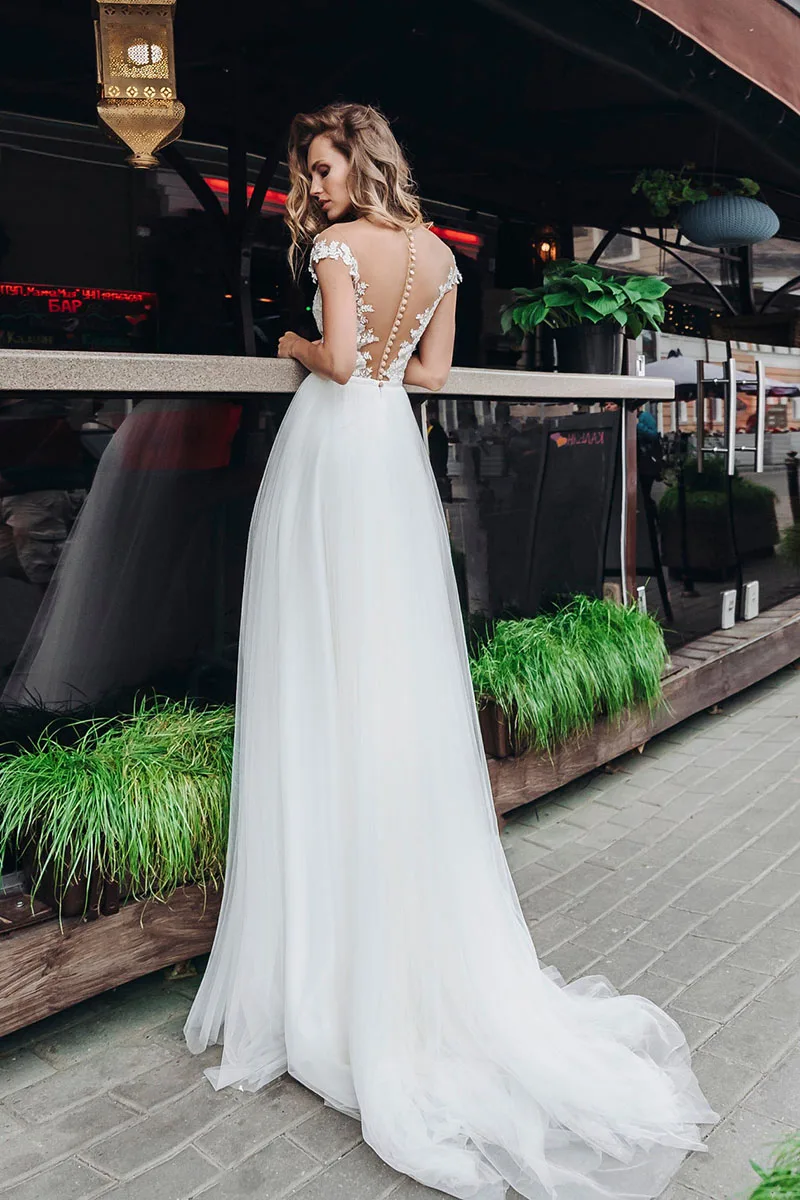 Свадебное платье с V-образным вырезом, на пуговицах