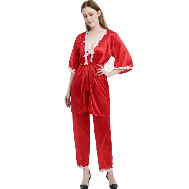 Женская атласная пижама, пижама из 5 предметов, пикантная кружевная Пижама, пижама для сна и отдыха, шелковая ночная Домашняя одежда, Пижамный костюм