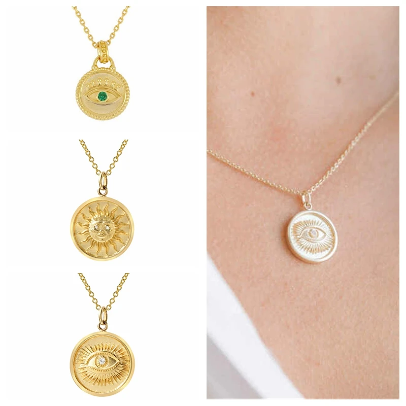 Viny простой циркон Sun медаль ожерелье для женщин 925 стерлингового серебра ювелирные изделия Очаровательная подвеска на цепочке ожерелье Бижутерия Воротник Joyero