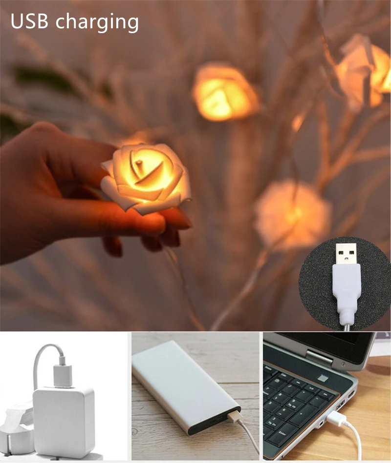 USB светодиодная гирлянда с розами для украшения сада на открытом воздухе, гирлянда, светильник для свадьбы, праздника, Рождества, сада