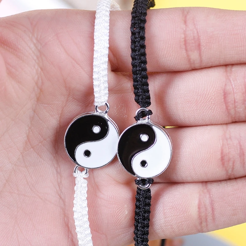 Плетеный браслет для пар Tai Chi, браслет Инь-Янь тайчи, регулируемые ювелирные изделия, плетница ручной работы, браслет с подвесками для влюбленных дружбы