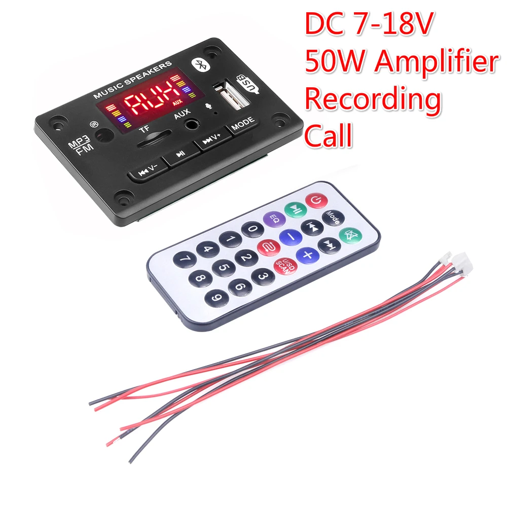 50 Вт усилитель MP3 декодер плата 7-18 в Bluetooth V5.0 Автомобильный MP3 плеер USB модуль записи FM AUX радио для динамика громкой связи