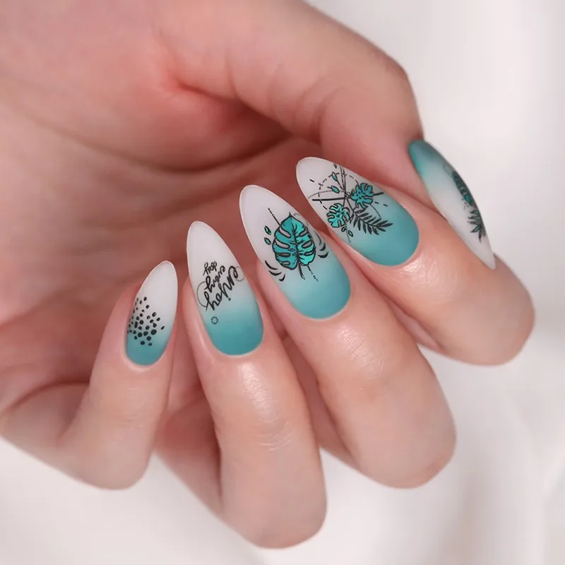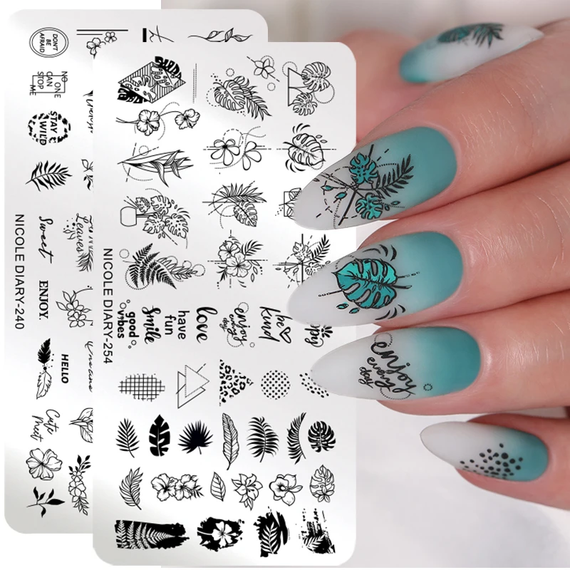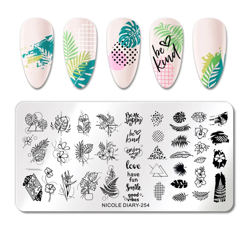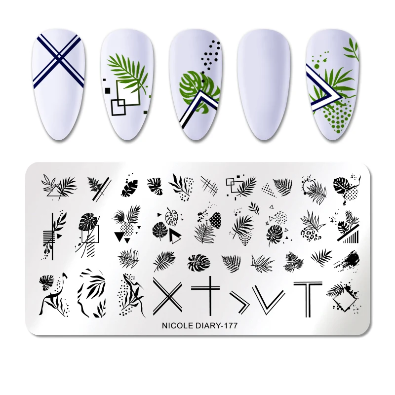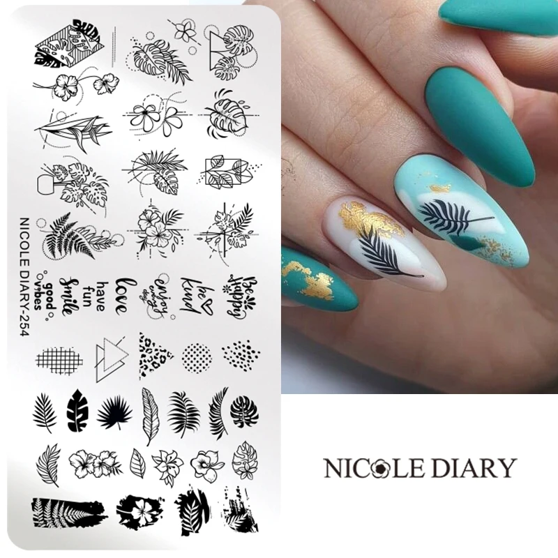 Трафареты NICOLE DIARY для стемпинга ногтей с изображением тропических растений, пляжных листьев, трафаретов, геометрических цветов и линий