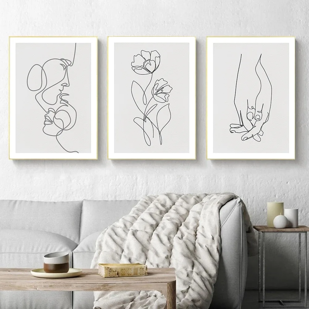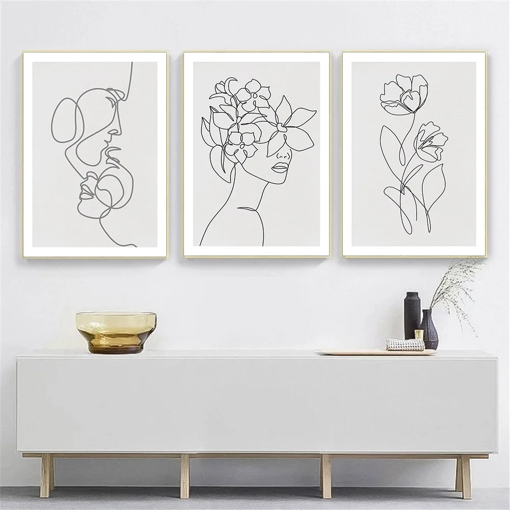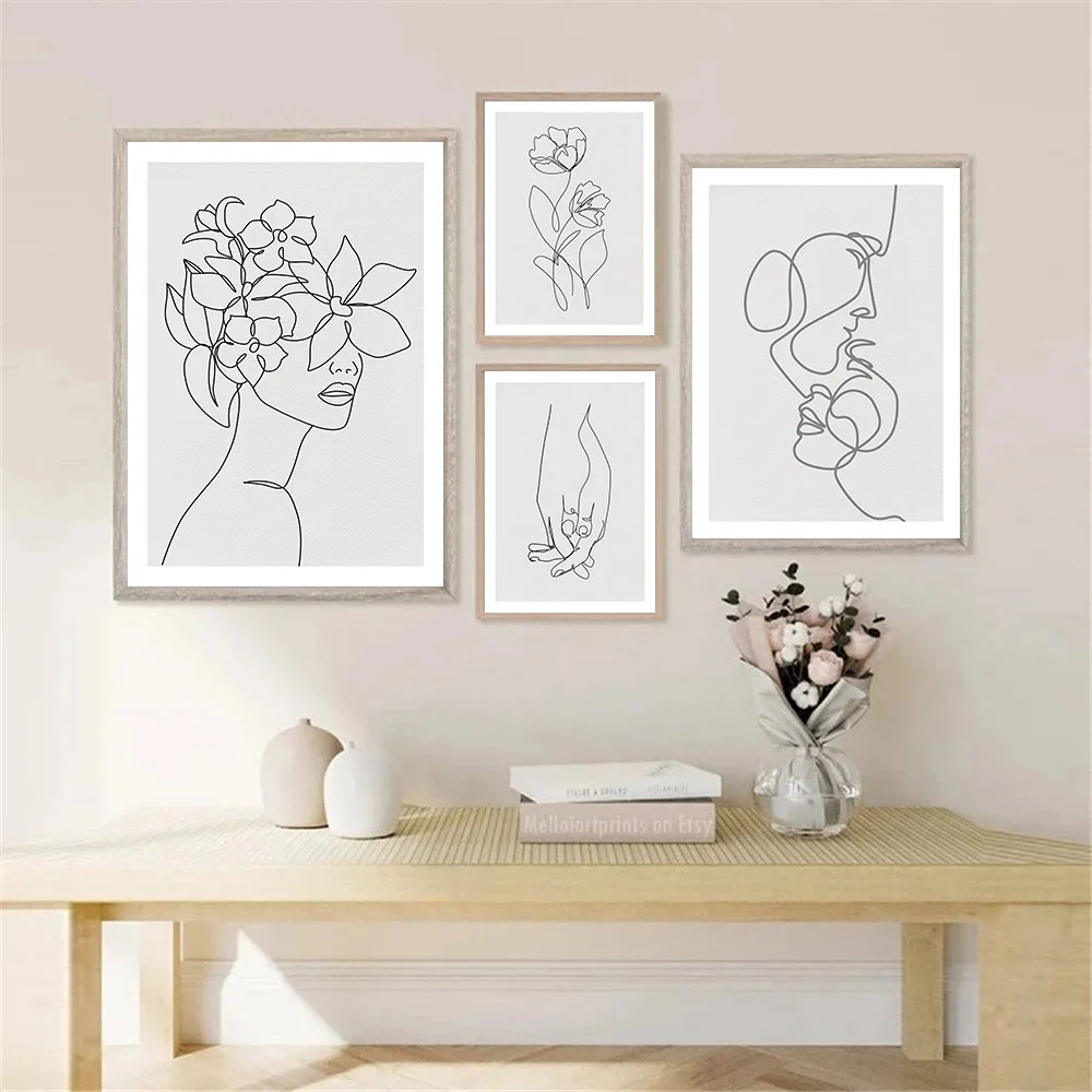 Абстрактная картина для пар, настенный постер с изображением лица, цветка, женского тела, Минималистичная Картина на холсте для украшения гостиной