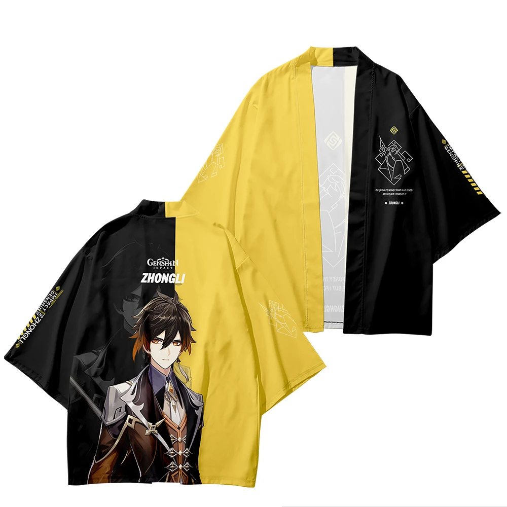 Кимоно из игры Genshin Impact Zhongli, японское кимоно хаори юката Чжун ли для косплея, летнее кимоно с коротким рукавом, унисекс