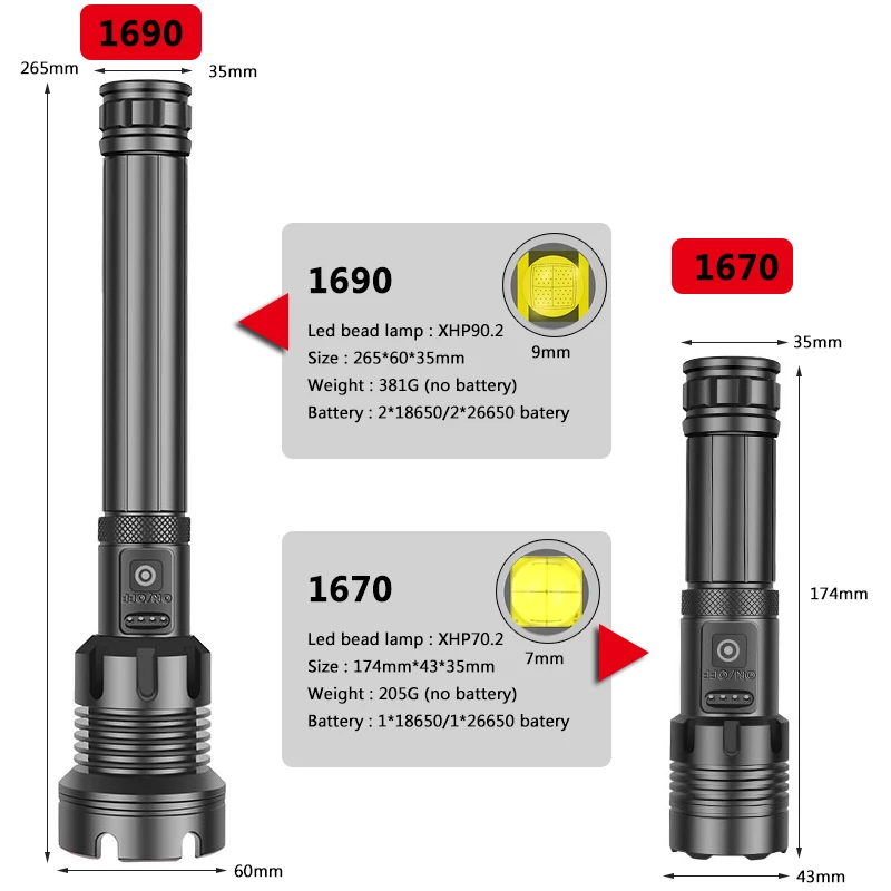 2. Если вы выбираете "аккумулятор 18650" и 1690 фонарик. Посылка включает 2шт 2600mAh 18650 батареи. 1670 фонарик будет включать 1 шт. 2600 мАч 18650 аккумулятор.