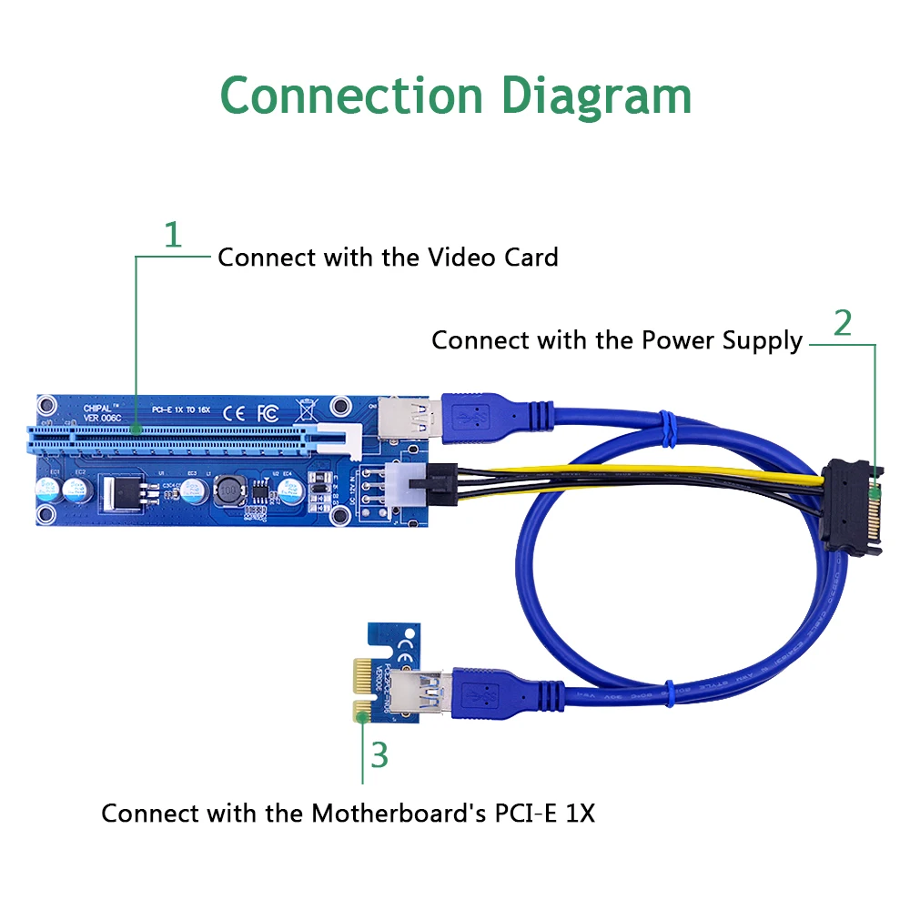 CHIPAL 100 шт. VER006C PCI-E 1X to 16X Riser Card PCIE Extender USB3.0 кабель PCI-E Sata к 6pin шнур питания для видеокарты GPU
