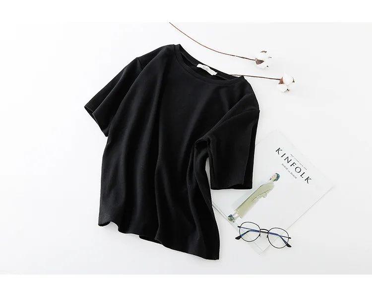 Женские топы, Однотонная футболка из чистого хлопка для женщин, лет...
