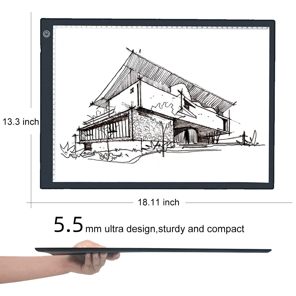 1. Портативный светильник дизайн светильник вес, удобство переноски и отсутствие проблем при хранении.2. Защита глаз во время отслеживания: сверхъяркий экологически чистый светодиод без мерцания, равномерный и стабильный свет позволит вам чувствовать себя комфортно во время отслеживания. Светонаправляющая пластина отфильтровала вредные лучи и защищает ваши глаза, без резкого светильник, без проблем в течение длительного времени работы.3. Питание от USB: поставляется с USB-кабелем, световой короб для трассировки легко включается, подключая к блоку питания, компьютеру или любому USB-порту на розетке.4. Широкое применение светильник световая панель-идеальный инструмент для набросков, рисования, 2D анимации, каллиграфии, тиснения, скрапбукинга, переноса татуировок, квилтинга, независимо от того, профессионалы или любители. Это также сказочный подарок для художников, дизайнеров и фотографов.
