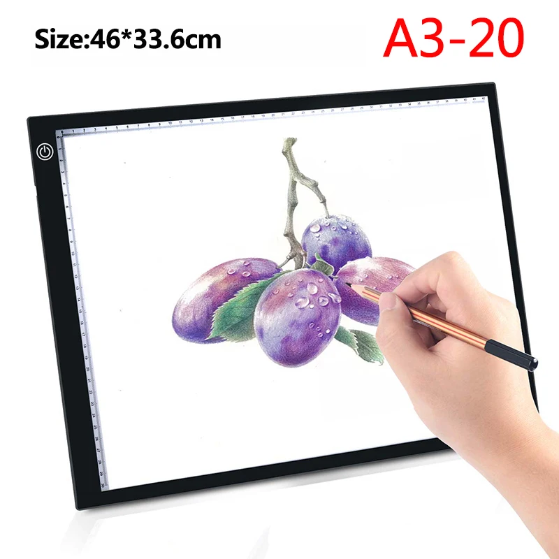 Материал: акрилРазмер: 46 см * 33,7 см * 0,55 смТип: A3/A4Рабочее напряжение: 5 В, 2 АНоминальная мощность: 8,6 ВтЯркость: трехуровневое затемнение