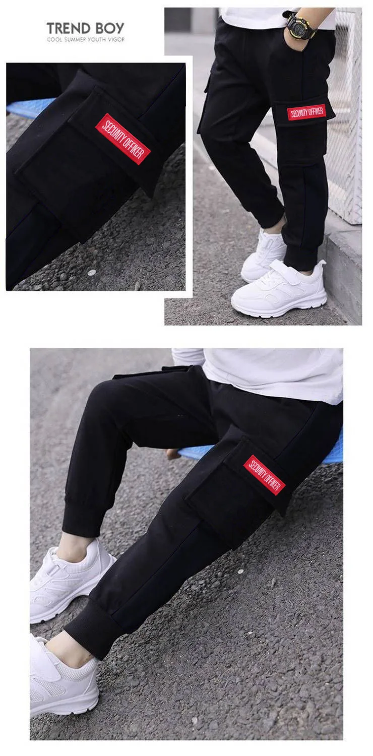 Детские брюки, хлопковая одежда, эластичные рабочие Брюки с кармана...