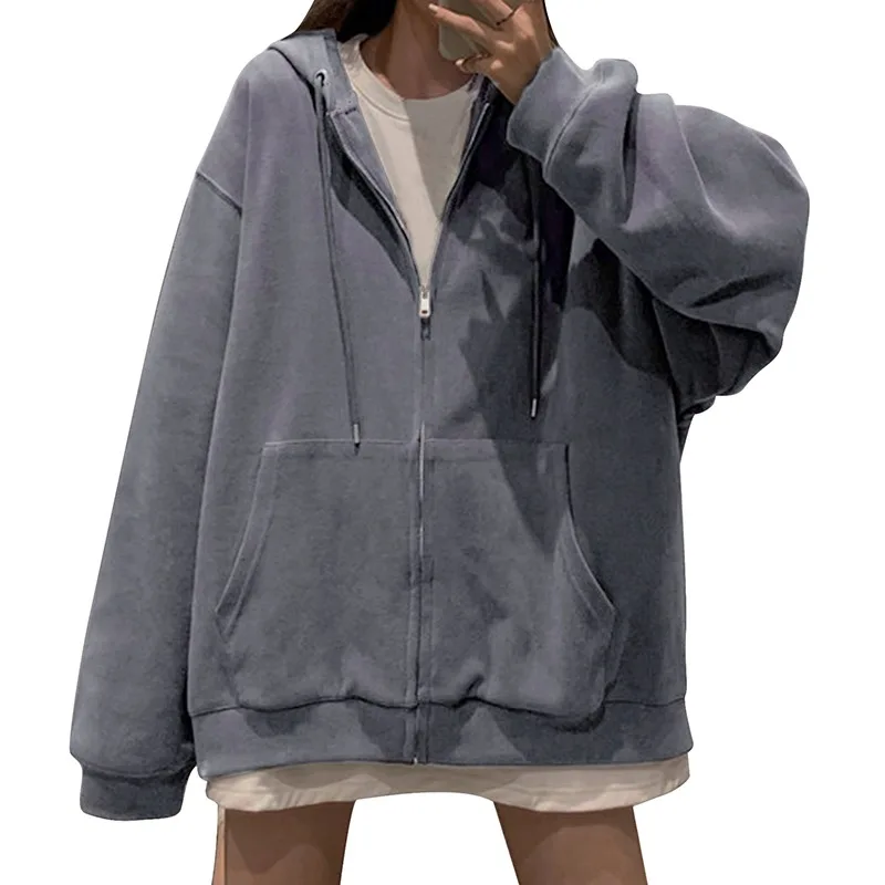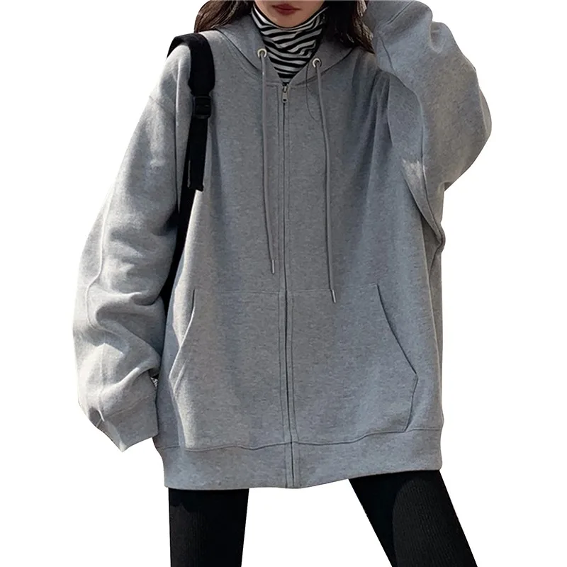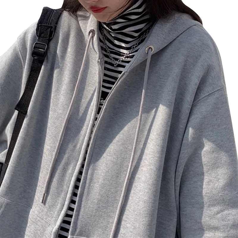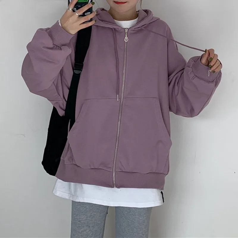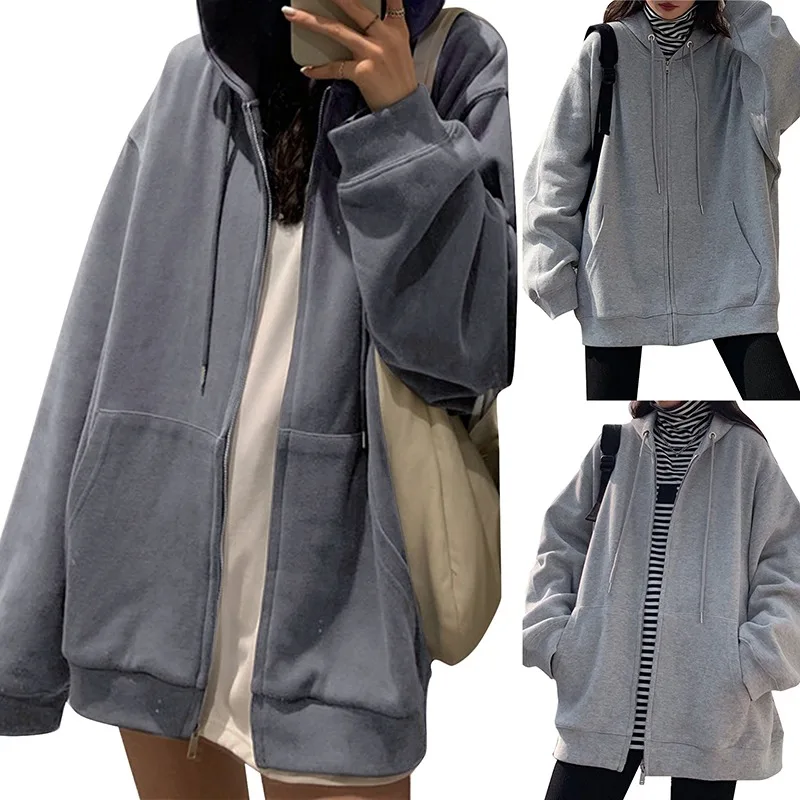 Женская толстовка на молнии, весенняя куртка большого размера, винтажные пуловеры с карманами и длинным рукавом