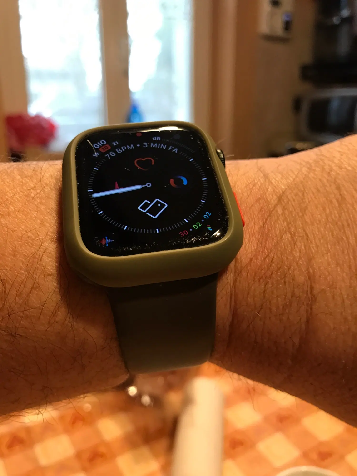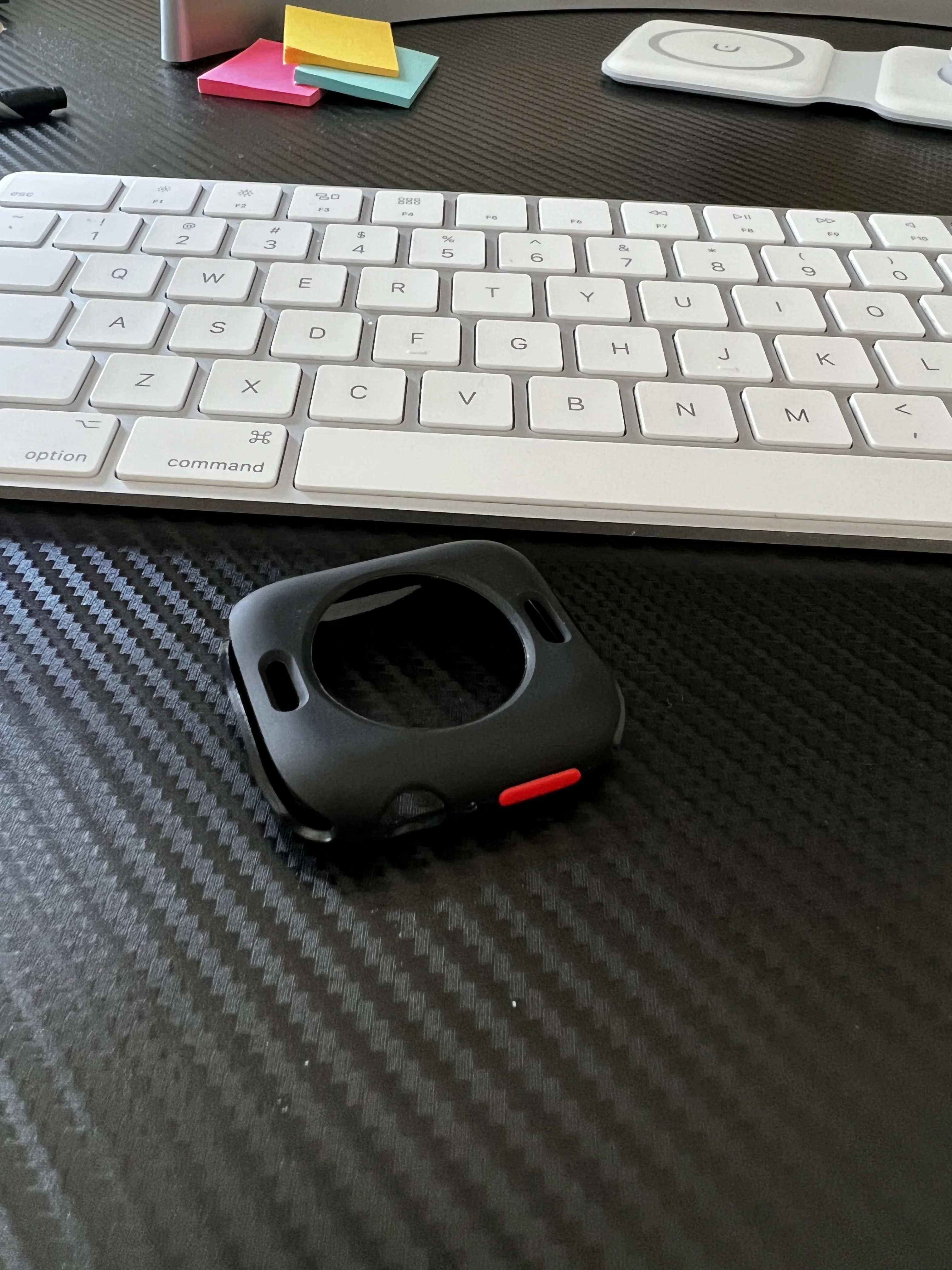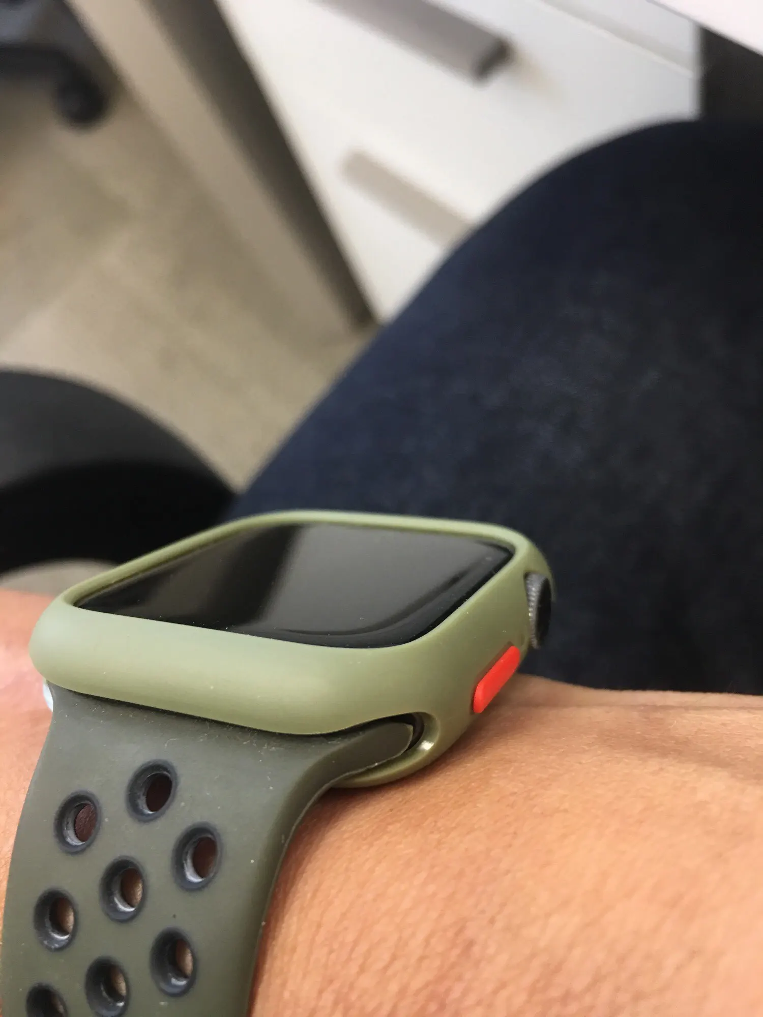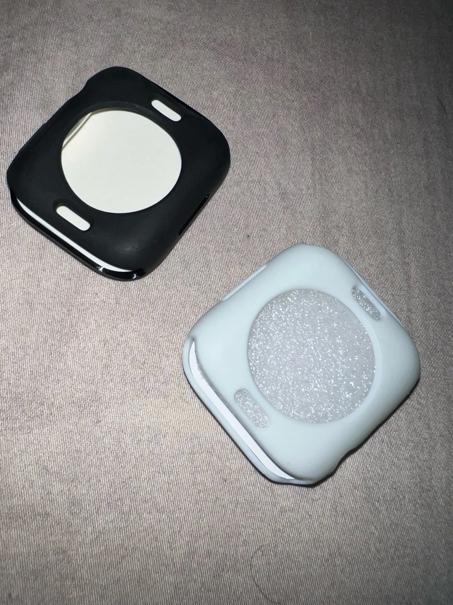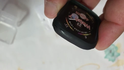 Приятный на ощупь силикон, но есть значительное количество недостатков (избыток материала и недостатки текстуры) в производственном процессе. Чехол немного сложно надеть. Он также немного перемещается на часах. Если вы используете защитную пленку из пластиковой пленки, то чехол будет перемещаться и толкать его вверх по краям, заставляя пленку оторваться.