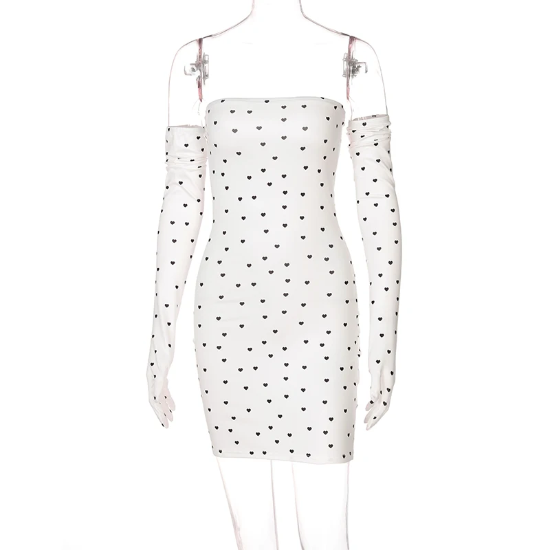 Chicology 2021 летние женские белые с сердечками в горошек Цветочные съемные перчатки тонкие Сексуальные облегающие мини платья на одно плечо