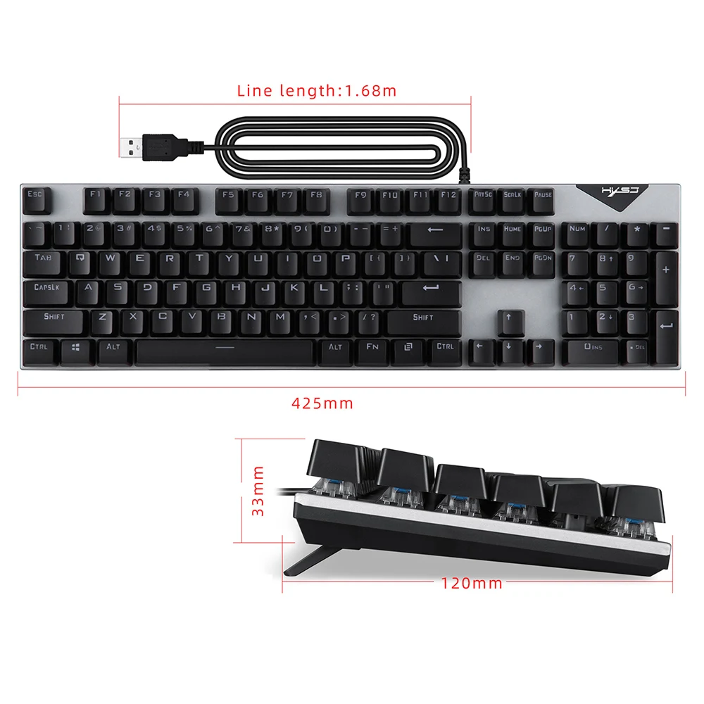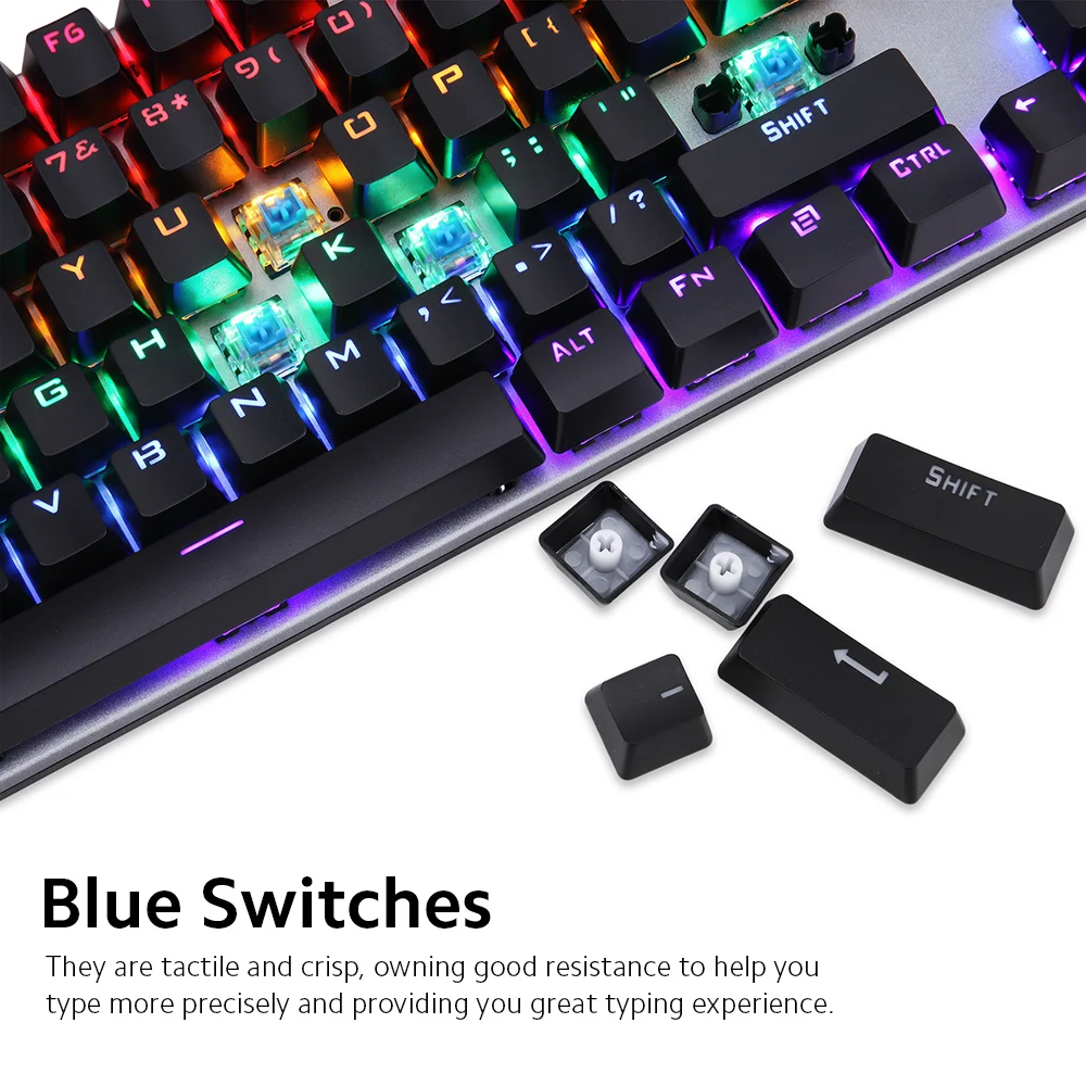HXSJ L300 проводная клавиатура с 104 клавишами, клавиатура с RGB-подсветкой, N-клавиши, переключатель, синий цвет, 20 + световых эффектов, клавиши для записи макросов, черный