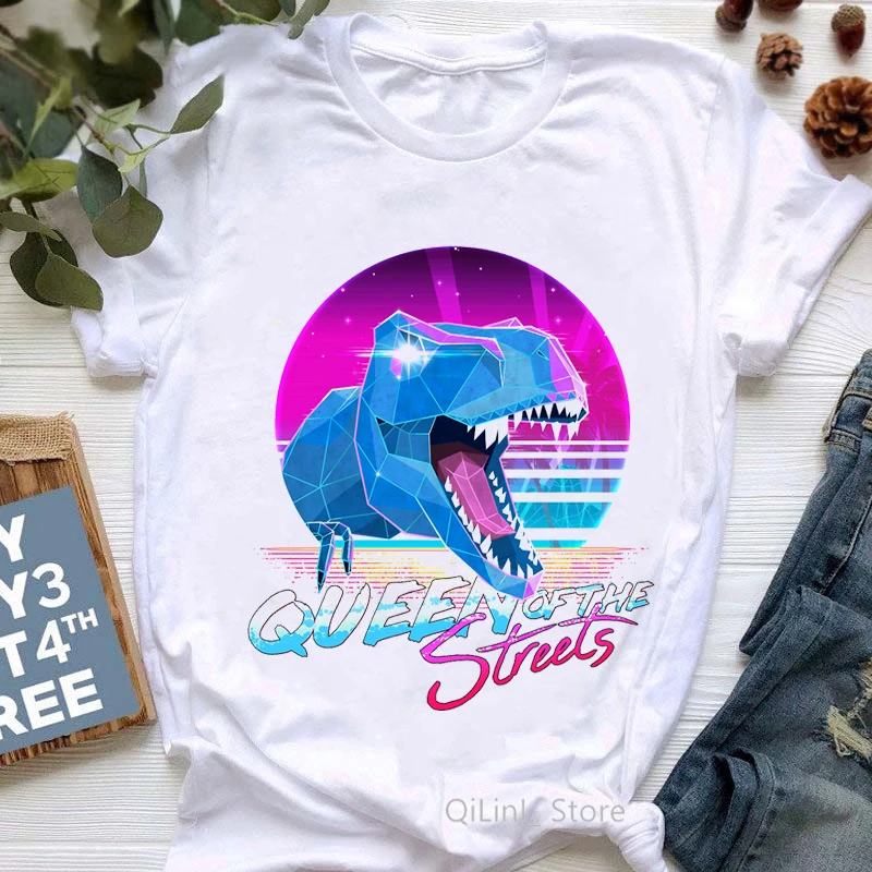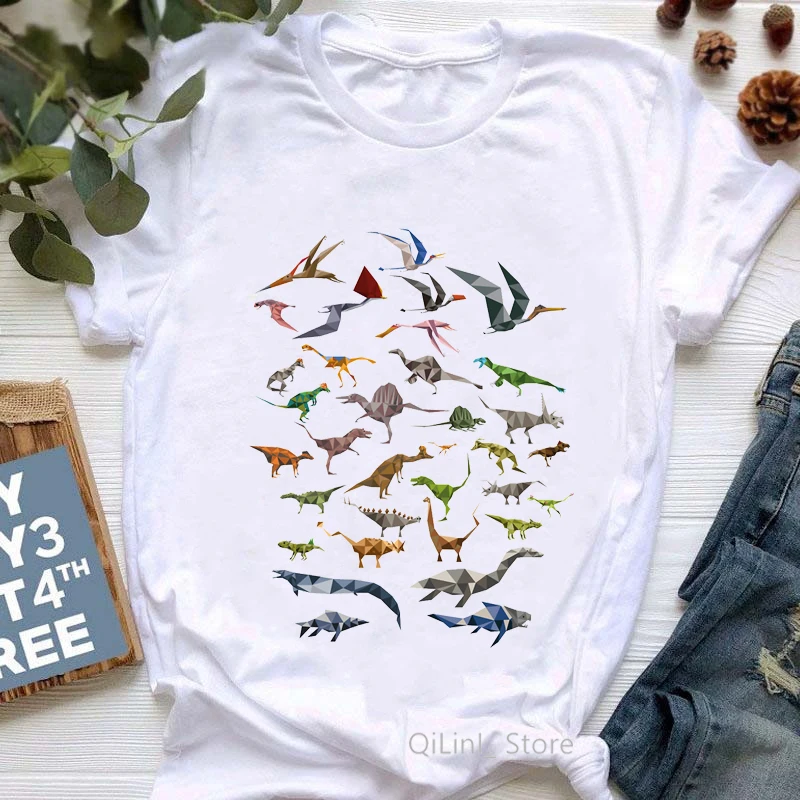 Футболка женская с акварельным принтом динозавров и животных, топ с коротким рукавом в стиле парка Юрского периода, белая рубашка с принтом животных, футболка с паровой волной, на лето