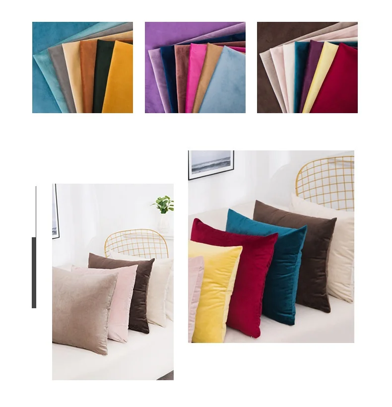Бархатный Чехол для подушки, мягкий однотонный декоративный квадрат...