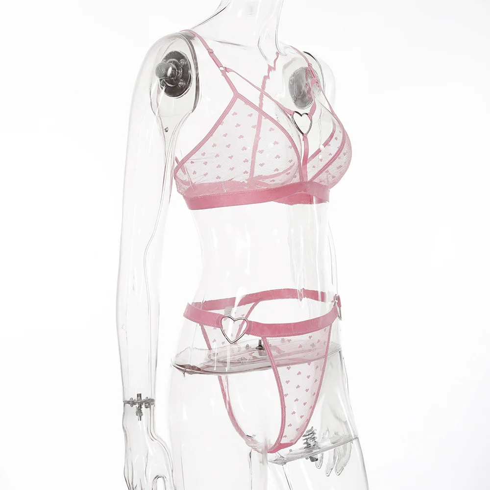 Сексуальное нижнее белье с вышивкой, нижнее белье в форме сердца, чувственное женское прозрачное эротическое белье, кружевной бюстгальтер и трусики