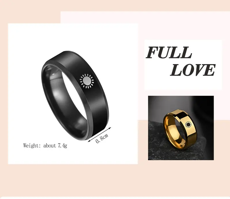 Парные кольца из нержавеющей стали простой солнце и луна Стиль для влюбленным, 3 вида цветов для женщин и мужчин, свадебные кольца ко Дню Святого Валентина, ювелирные изделия в качестве подарка