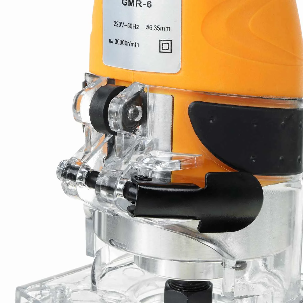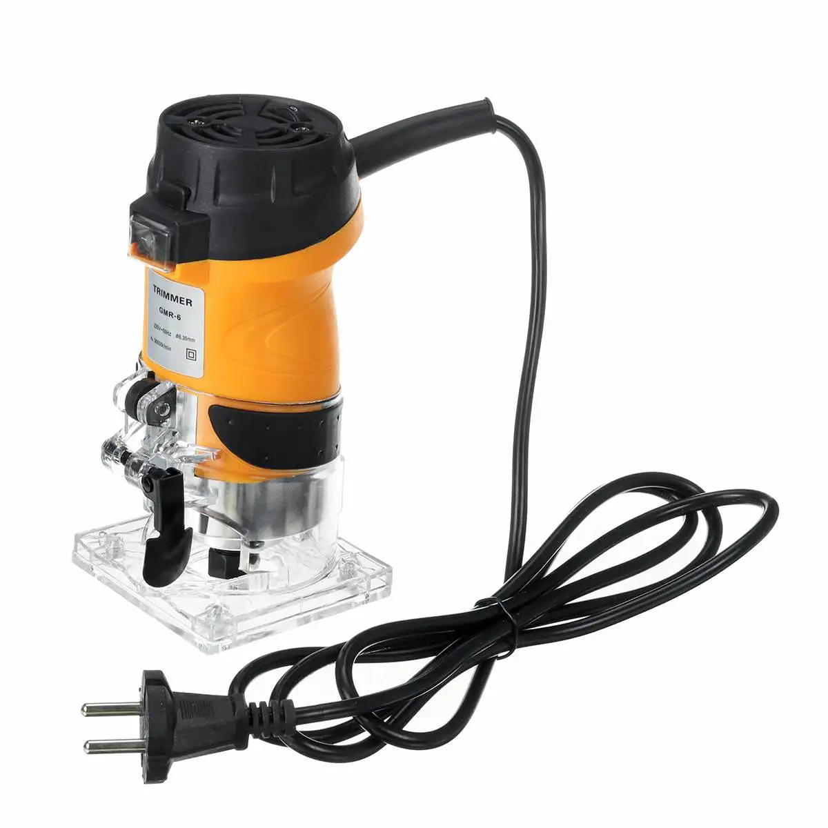 Посылка включает в себя:1 x Электрический деревянный триммер1 x прямая направляющая1 x обрезное Натяжное колесо2 Ключи1 x набор инструментов1 x Руководство пользователяОсобенности1. Деревообрабатывающий триммер. Подходит для обработки деревянных дверей, мебельной фабрики, рукоделия, самостоятельной работы.2. Использование 2200 Вт полностью медного элемента, мощный и прочный. Алюминиевый корпус, прочный и пылезащитный.3. 6 скоростей регулируется, 800 об/мин-33000 об/мин.4. Прозрачная крышка для четкого наблюдения за условиями обработки.5. Один ключ для включения/выключения питания.6. 190 см кабель для более широкого диапазона работы.7. Применяется к дереву, пластиковой пленке, деревянному шпону и другим аналогичным материалам, фаски, канавке, отделке поверхности, резке кривой, строганию кромки дерева, обработке узоров.Спецификация:1. Название: Электрический деревянный триммер2. Модель: E120293. Номинальное напряжение: 220 В4. Пиковая мощность: 2200 Вт5. Размер изделия: прибл. 18x8.8cm6. Длина кабеля: прибл. 190 см9. Диаметр цанги: прибл. 0,635 см/0,25"