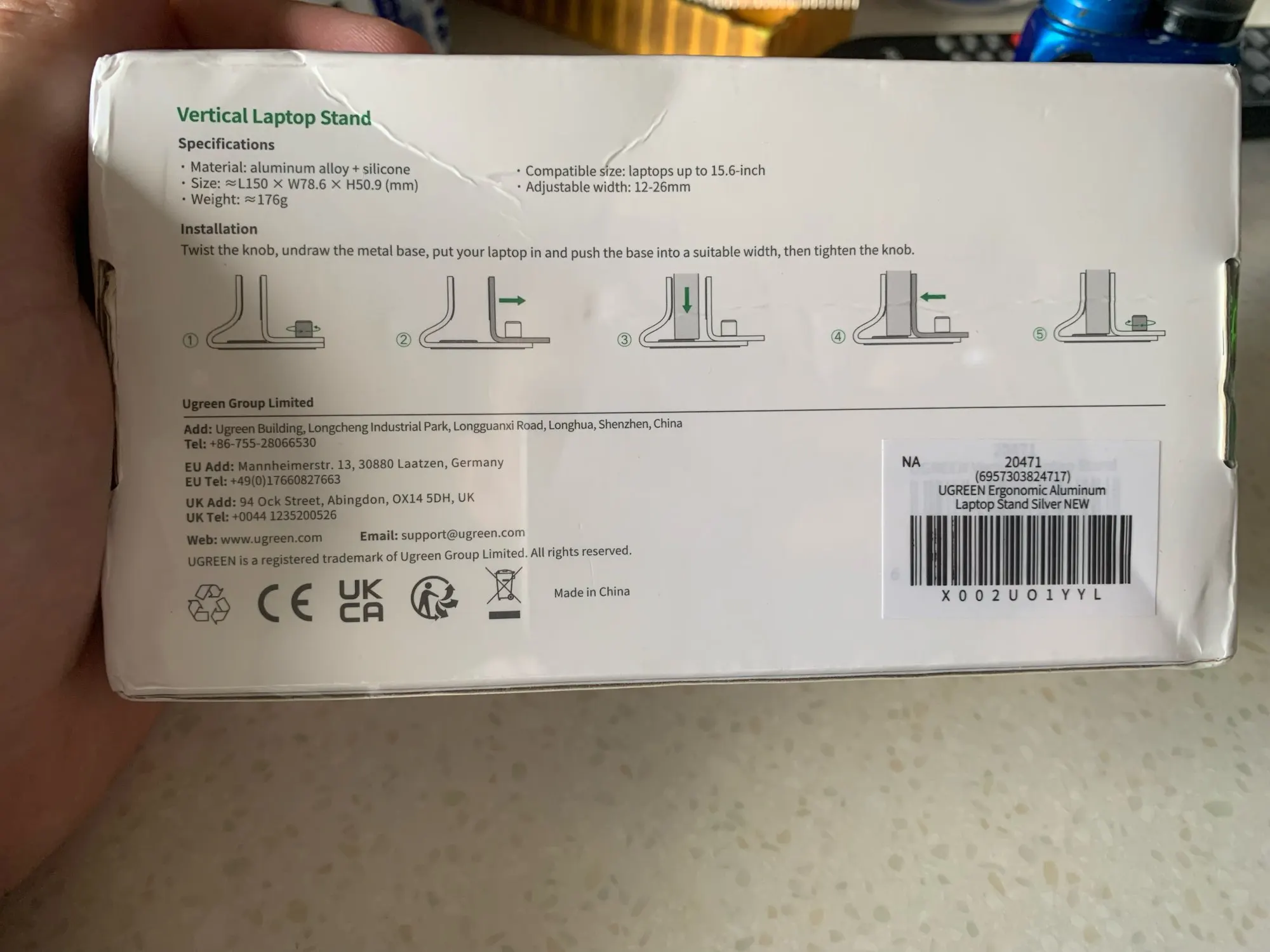 UGREEN вертикальный держатель для ноутбука MacBook Air Pro, алюминиевая складная подставка для ноутбука, поддержка MacBook Pro, подставка для планшета