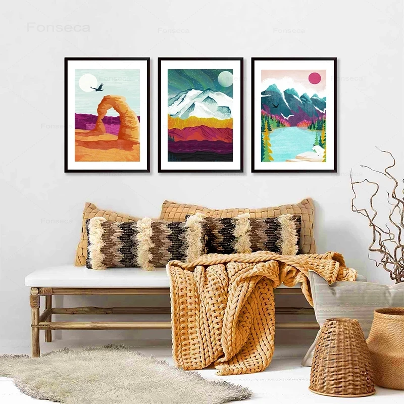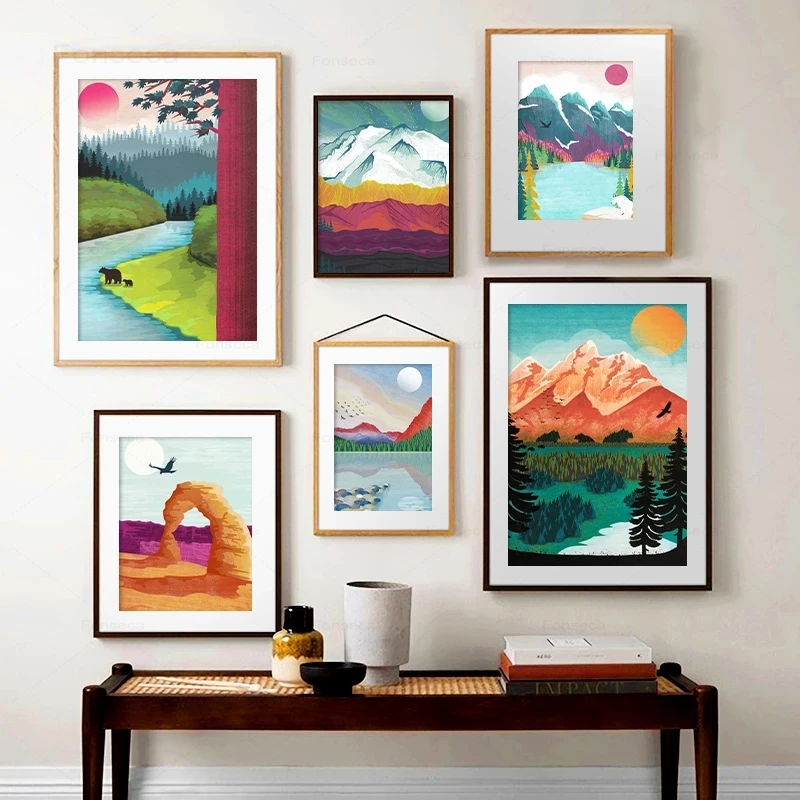 Настенная картина в скандинавском стиле с изображением пейзажа, арки, банфф, Постер и печать на холсте гор, реки, леса, картины для рисования, картины для домашнего декора
