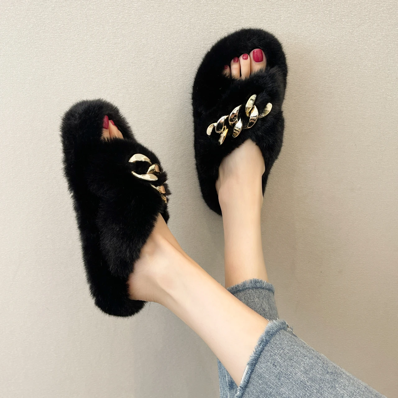 Тапочки женские с перекрестными ремешками, мягкие плюшевые удобные домашние туфли с открытым носком, удобные дышащие Шлепанцы из искусственного меха, без застежки
