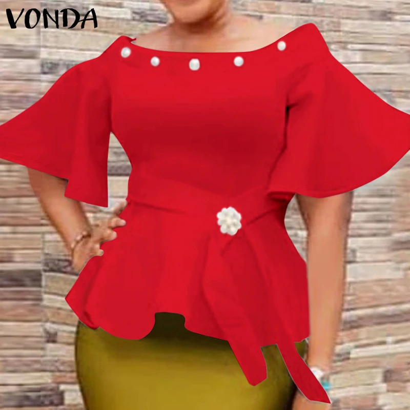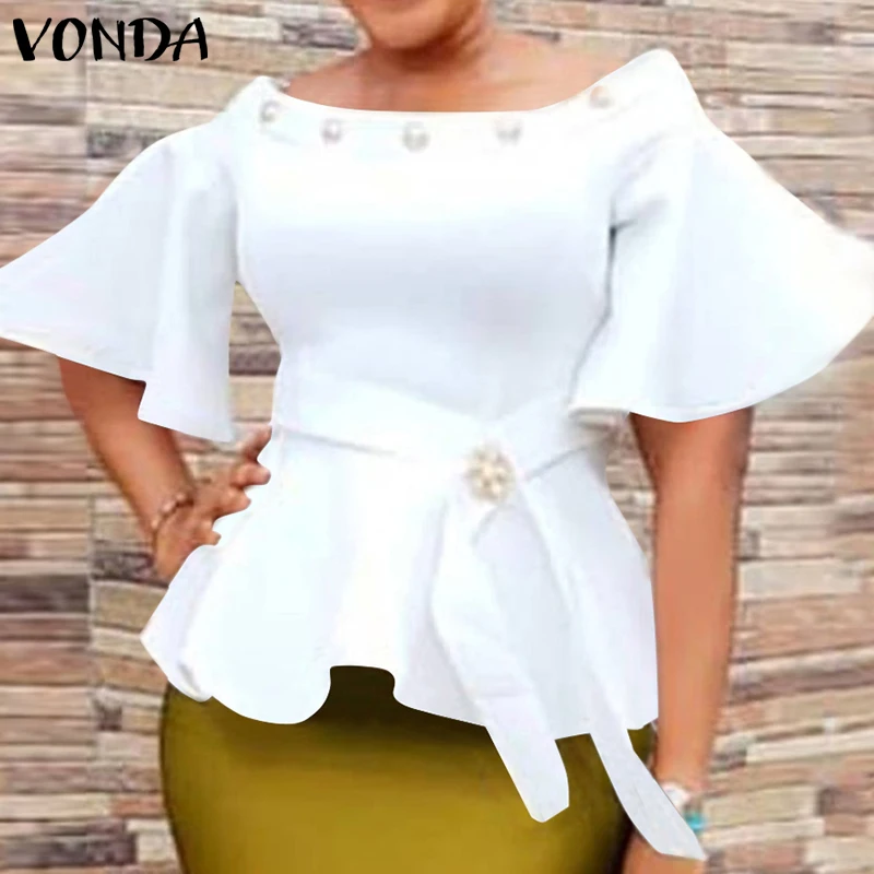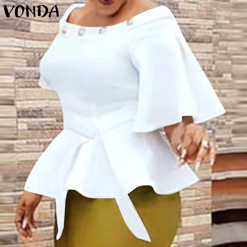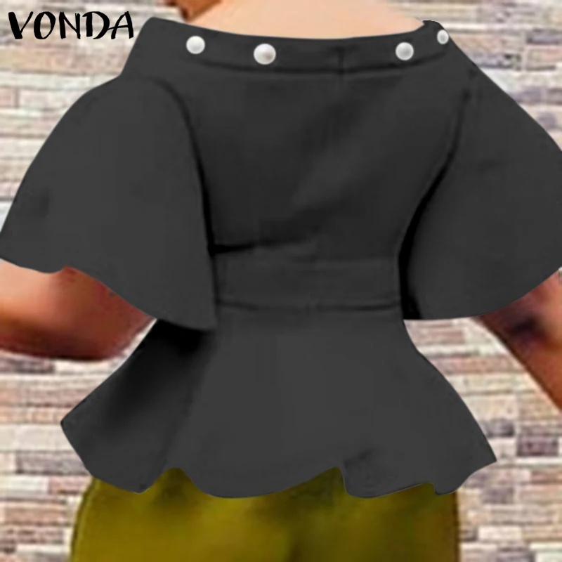 2022 женские летние топы VONDA, повседневная расклешенная Блузка с поясом и оборками, богемные блузы, женские рубашки для вечерние и офиса