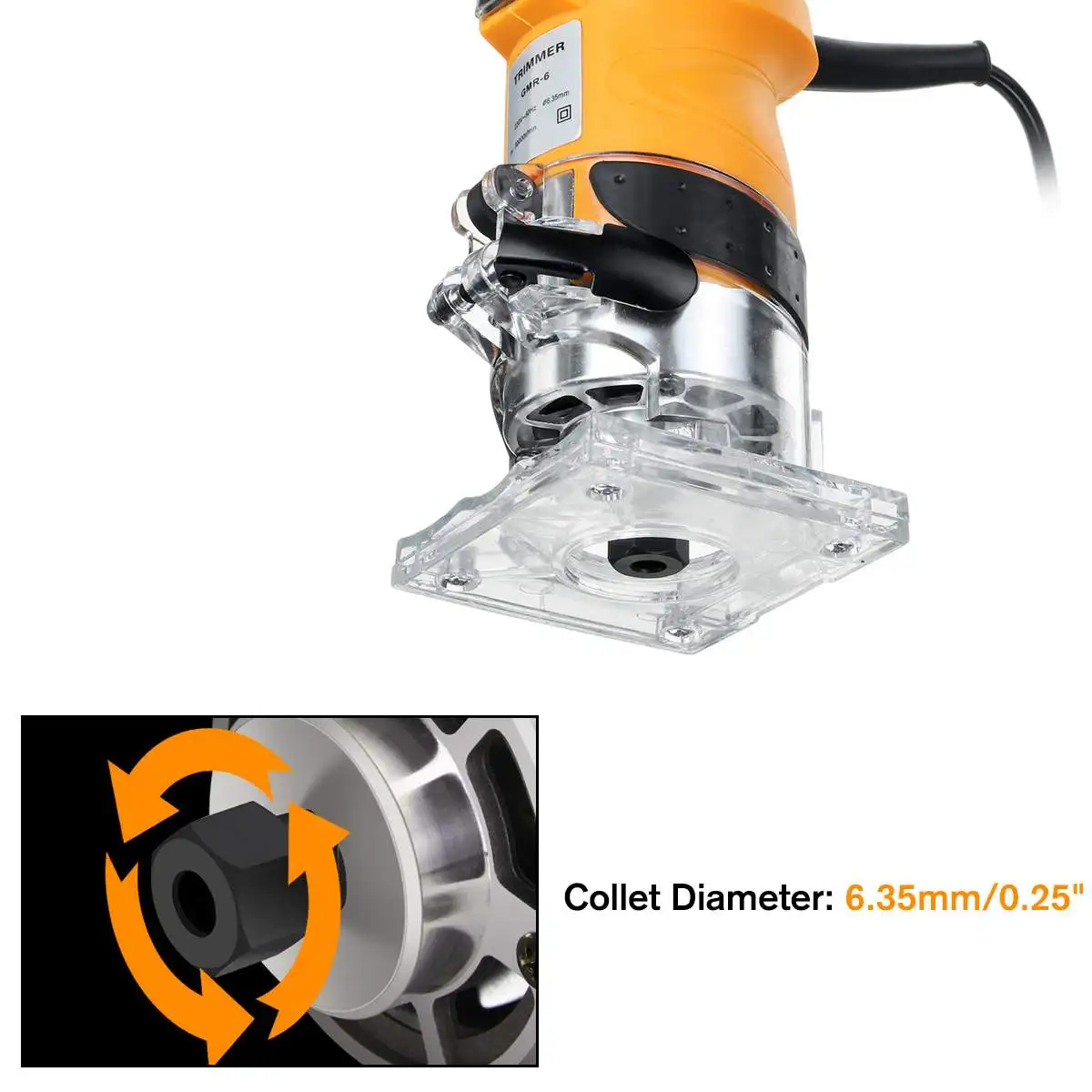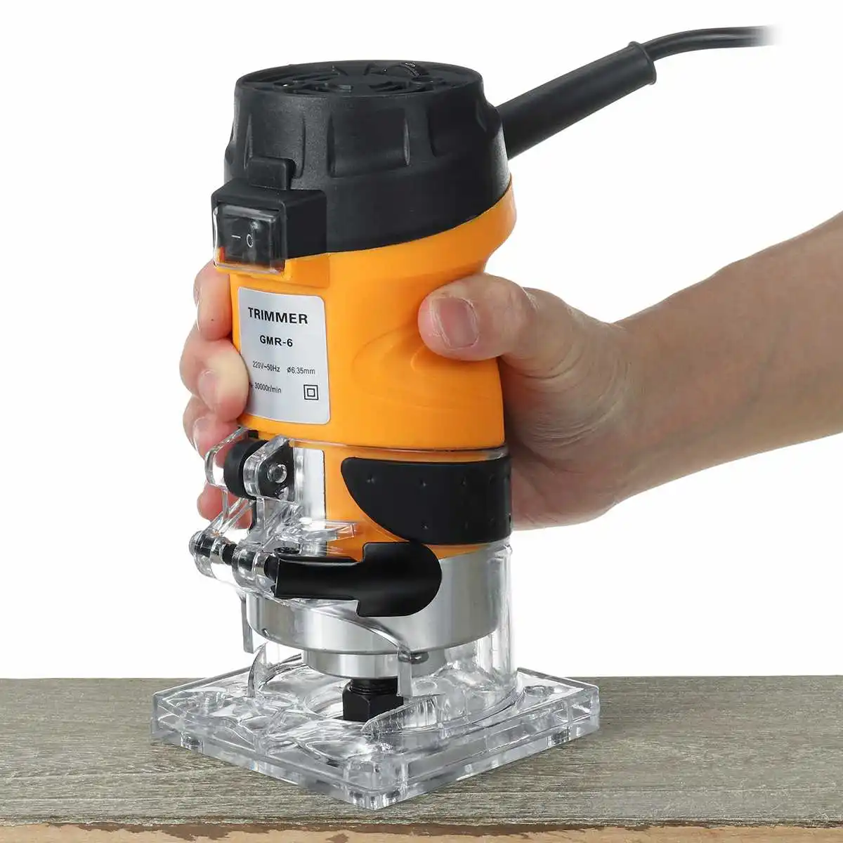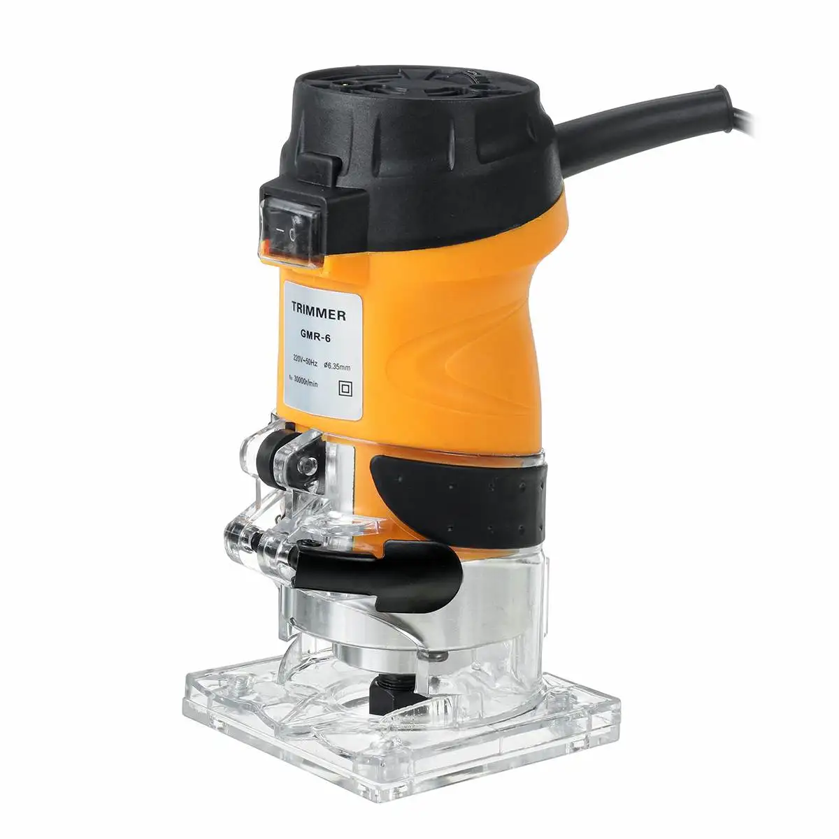 Посылка включает в себя:1 x Электрический деревянный триммер1 x прямая направляющая1 x обрезное Натяжное колесо2 Ключи1 x набор инструментов1 x Руководство пользователяОсобенности1. Деревообрабатывающий триммер. Подходит для обработки деревянных дверей, мебельной фабрики, рукоделия, самостоятельной работы.2. Использование 2200 Вт полностью медного элемента, мощный и прочный. Алюминиевый корпус, прочный и пылезащитный.3. 6 скоростей регулируется, 800 об/мин-33000 об/мин.4. Прозрачная крышка для четкого наблюдения за условиями обработки.5. Один ключ для включения/выключения питания.6. 190 см кабель для более широкого диапазона работы.7. Применяется к дереву, пластиковой пленке, деревянному шпону и другим аналогичным материалам, фаски, канавке, отделке поверхности, резке кривой, строганию кромки дерева, обработке узоров.Спецификация:1. Название: Электрический деревянный триммер2. Модель: E120293. Номинальное напряжение: 220 В4. Пиковая мощность: 2200 Вт5. Размер изделия: прибл. 18x8.8cm6. Длина кабеля: прибл. 190 см9. Диаметр цанги: прибл. 0,635 см/0,25"