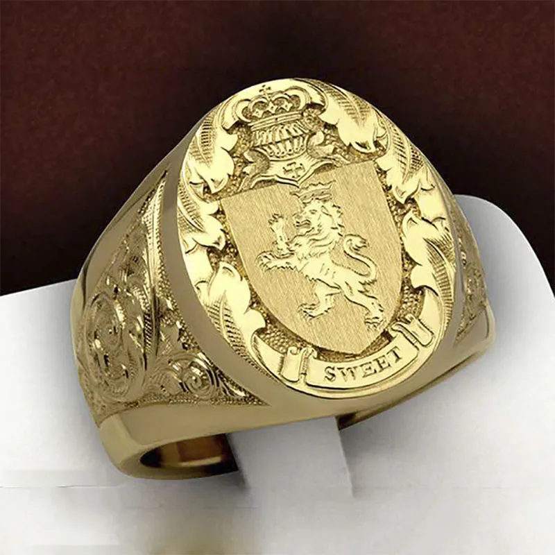 Punkboy модные работы крупная Золотая Цвет кольцо для мужчин властная кольцо Лев с вышивкой в виде короны, печать логотипа Коктейльные Вечерние кольца ювелирные изделия