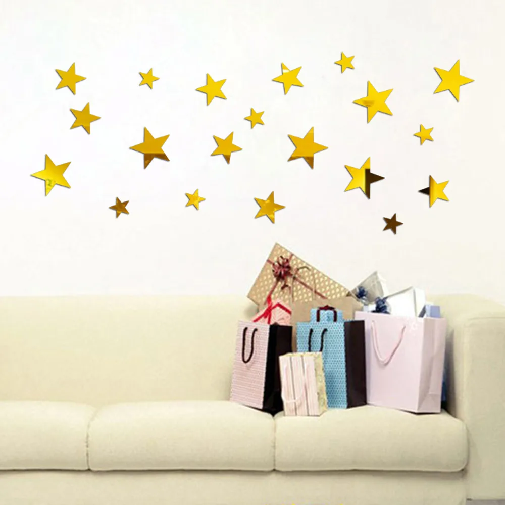 3D акриловая Зеркальная Наклейка на стену, современные аксессуары для украшения дома, звезды, Декоративные украшения