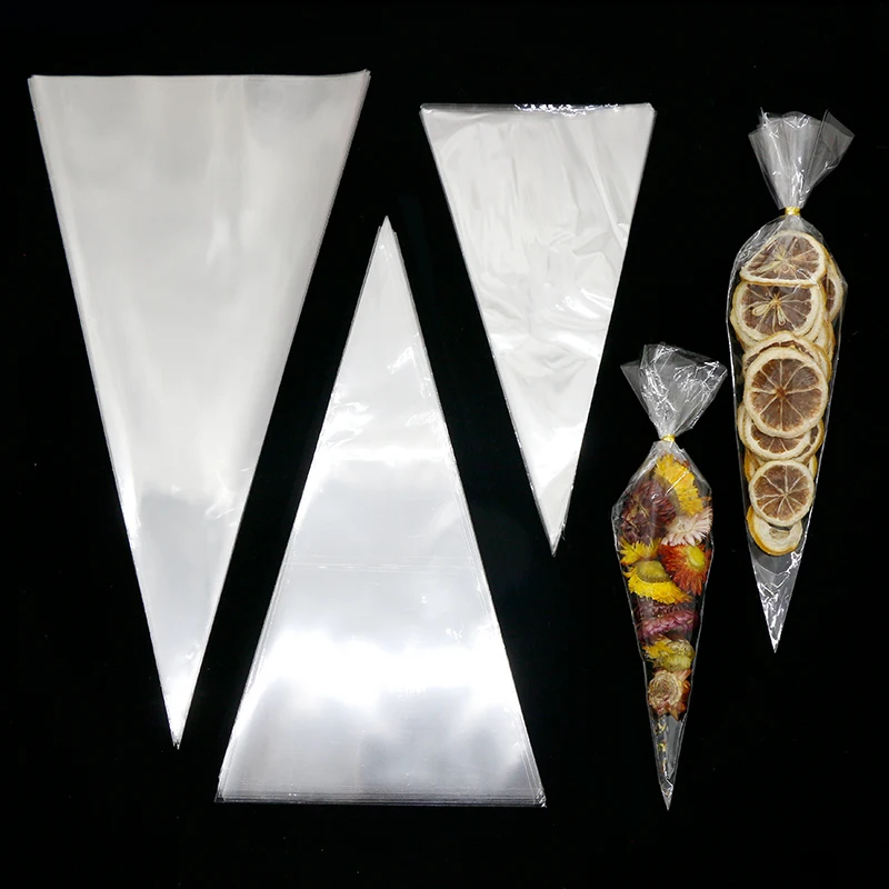 50 шт прозрачный Треугольники Форма подарки сумка симпатичных туфлей на завязках из полиуретана с открытыми порами Пластик целлофановые мешочки конусы конфеты Еда мешок для упаковки ювелирных изделий
