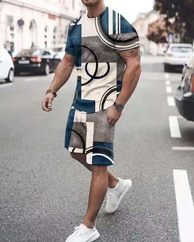 Мужской костюм-двойка, Винтажная футболка с коротким рукавом и прин...
