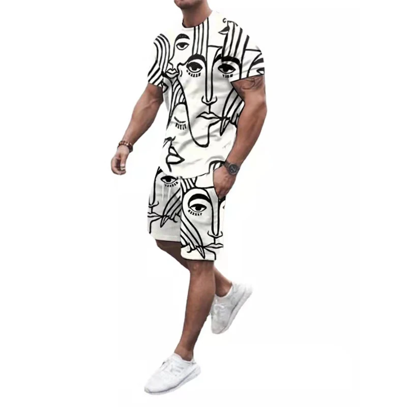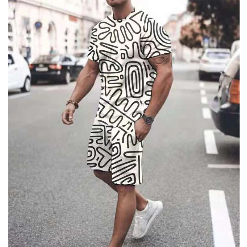 Мужской костюм из двух предметов, Винтажная футболка с коротким рукавом и шорты с принтом в стиле Харадзюку, Повседневная Уличная одежда, новинка 2021