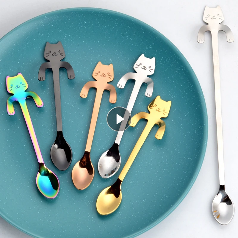 Ложка из нержавеющей стали для кошачьего чая, кофе, мороженого, чай...