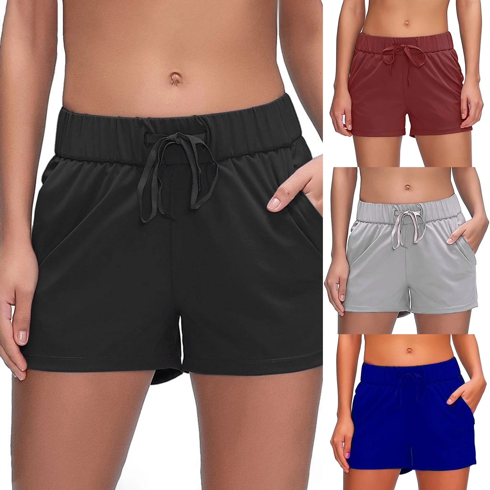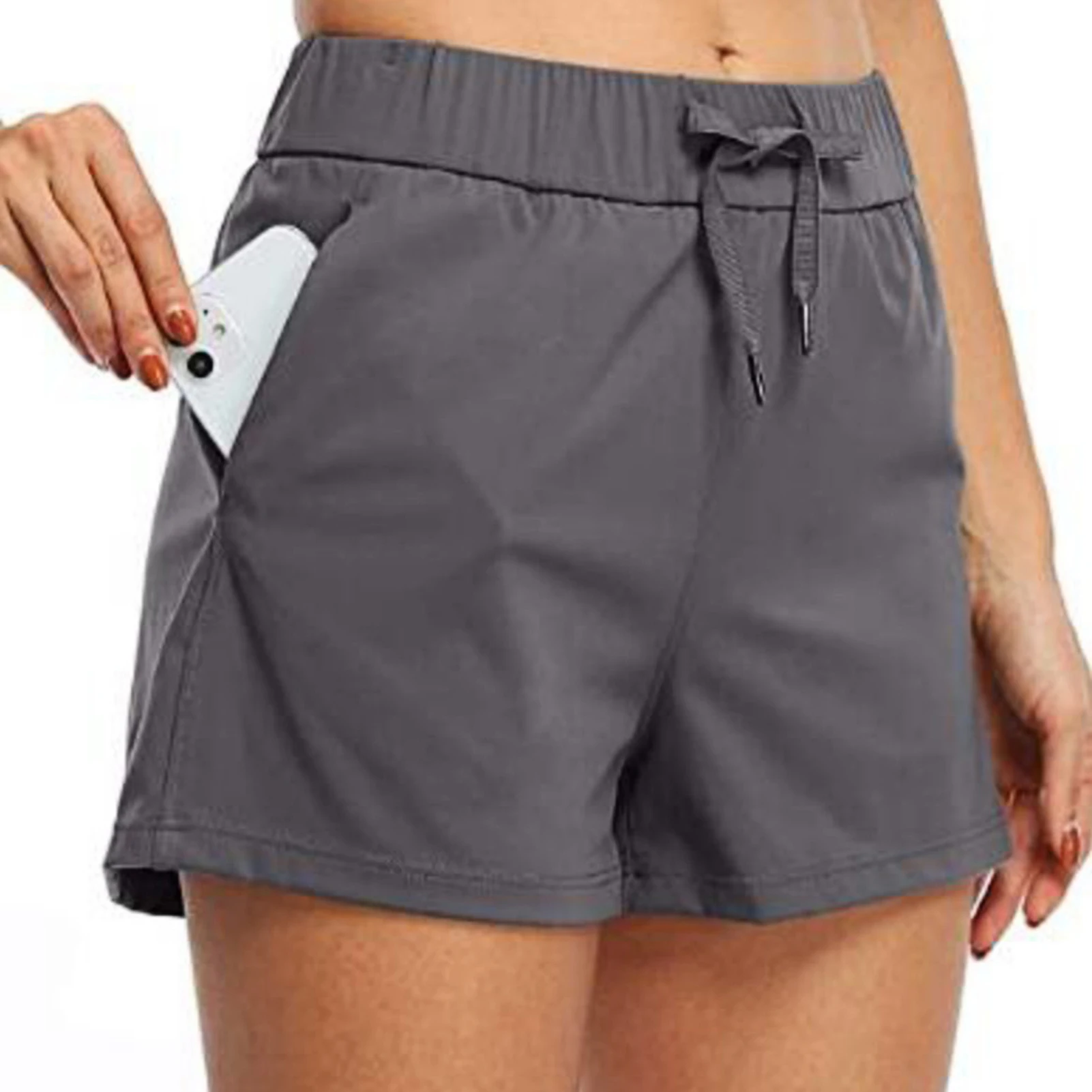 Женские повседневные шорты с высокой талией и карманами, однотонные уличные шорты с эластичной резинкой на талииОписание: