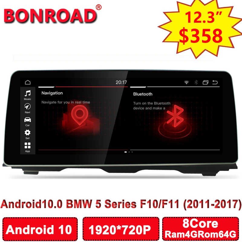 Автомобильный dvd-плеер Bonroad, 12,3 дюйма, Android 10,0, для BMW 5 серии F10 F11 520i 525i 528i 2011-2016 CIC NBT GPS-навигация Мультимедиа