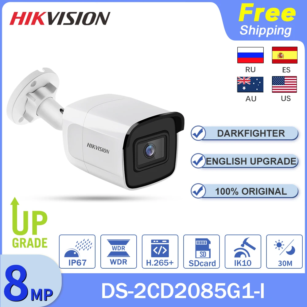 Hikvision 8MP 4K CCTV IP камера с защитой безопасности DS-2CD2085G1-I Оригинальная камера Darkfighter IR IP67 IK10 SD карта Fotografica