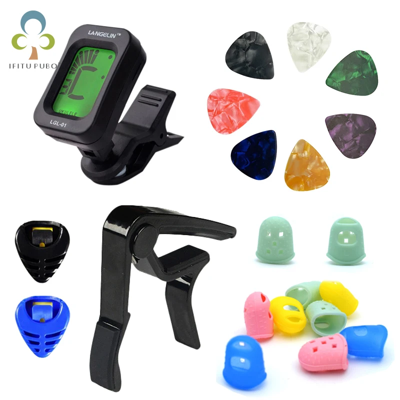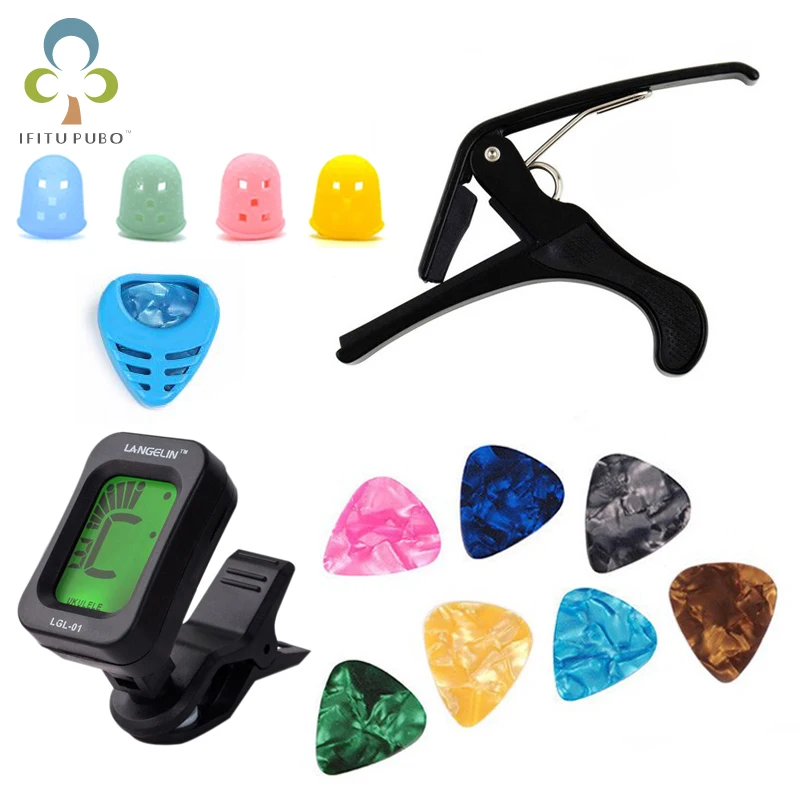 14 шт.компл. инструмент для настройки гитары Комплект гитарный тюнер Капо держатель медиатора защита для пальца выбирает настройки посредника гитары Запчасти аксессуары YJN