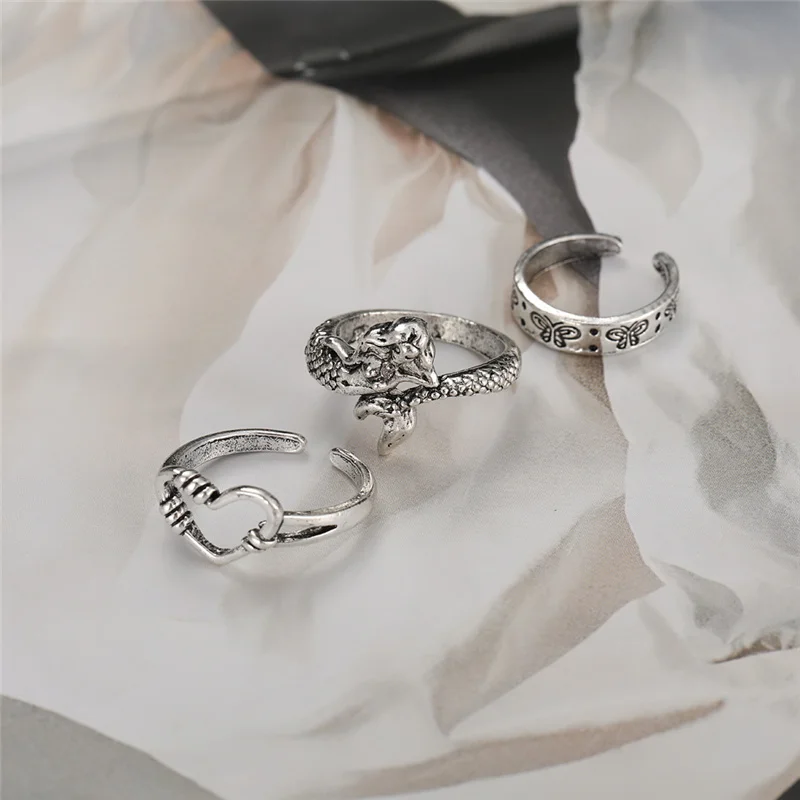Набор женских колец в стиле панк, змея, готический, серебристый, 6 шт.
