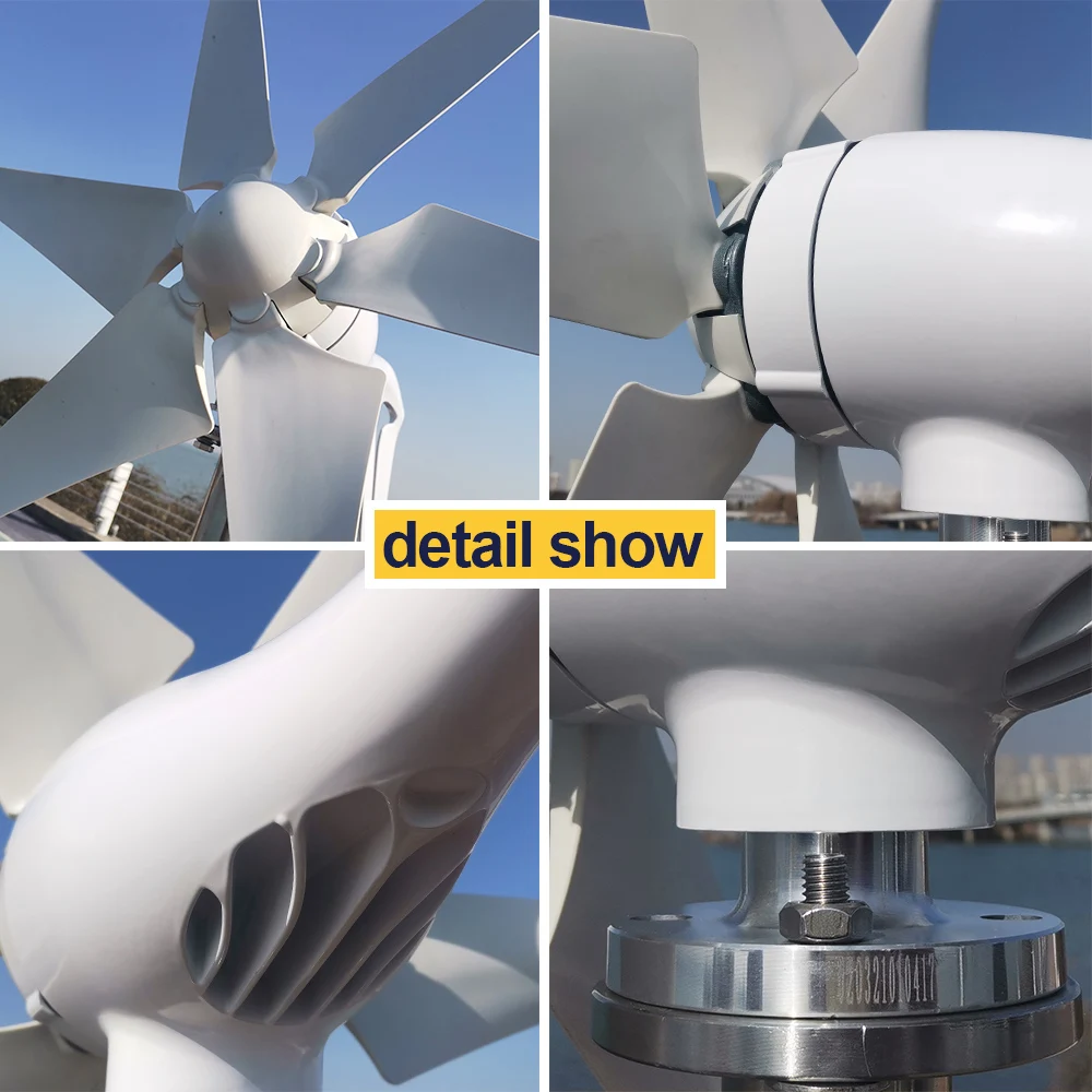 1. Низкая скорость запуска, 3/5/6 лопастей, высокое использование энергии ветра2. Простая установка, трубка или Фланцевое соединение опционально3. Лезвия используют Новое искусство точного литья под давлением, сочетающееся с оптимизированной аэродинамической формой и структурой, которые повышают использование энергии ветра и годовой выход.4. Корпус из литого алюминиевого сплава, с 2 подшипниками шарнирного соединения, что позволяет ему переживать сильный ветер и работать более безопасно5. Запатентованный генератор переменного тока с постоянным магнитом со специальным статором, эффективно уменьшает крутящий момент, хорошо сочетается с ветровым колесом и генератором, и обеспечивает производительность всей системы.6. Контроллер, инвертор может быть подобран (опционально) в соответствии с требованиями клиентов