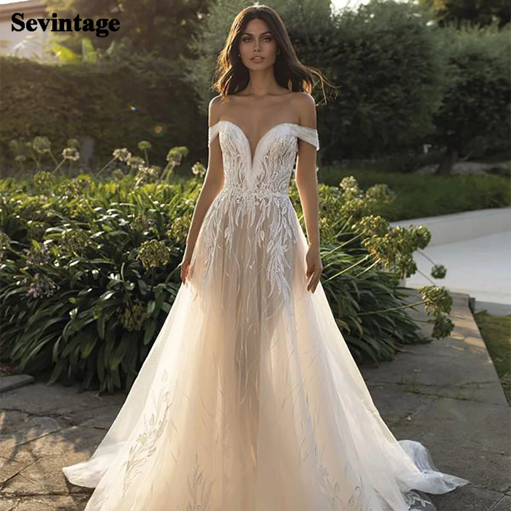 Платье свадебное кружевное с открытыми плечами, аппликацией и открытыми плечами