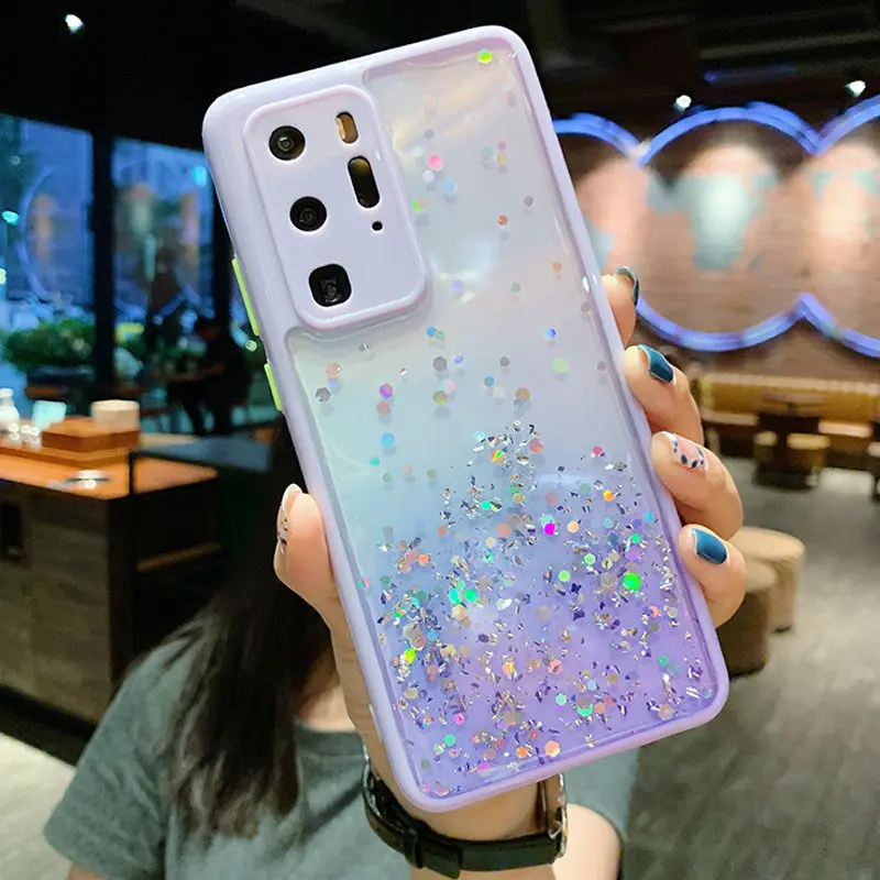 Градиентный блестящий чехол для телефона Samsung A72 A52 A32 5G S21 S20 S21FE Note 20 A02S0 мягкая эпоксидная Защита камеры прозрачная задняя крышка