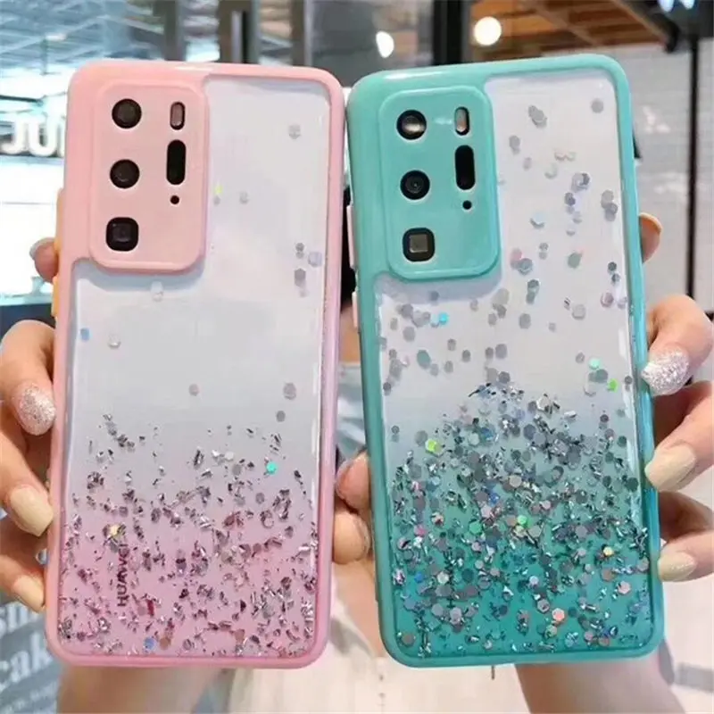 Прозрачный градиентый Блестящий Мягкий чехол для телефона с изображ...