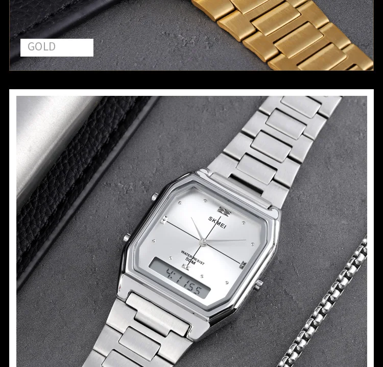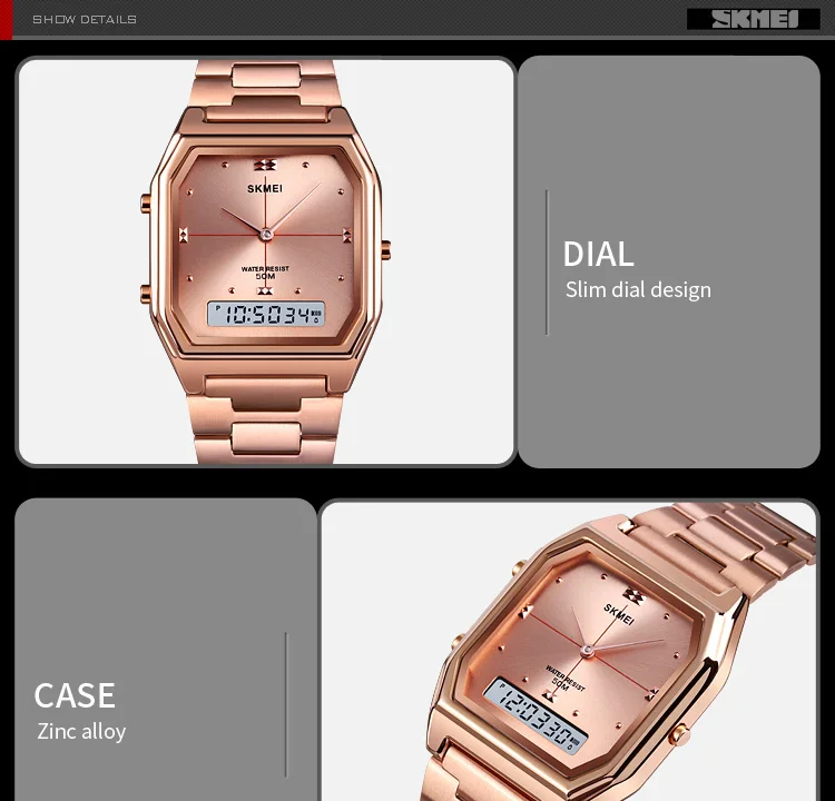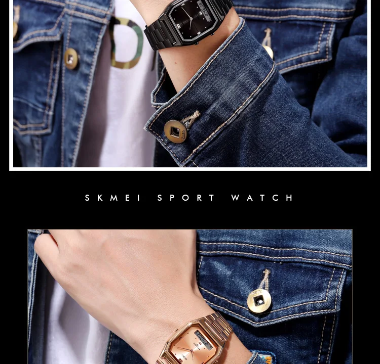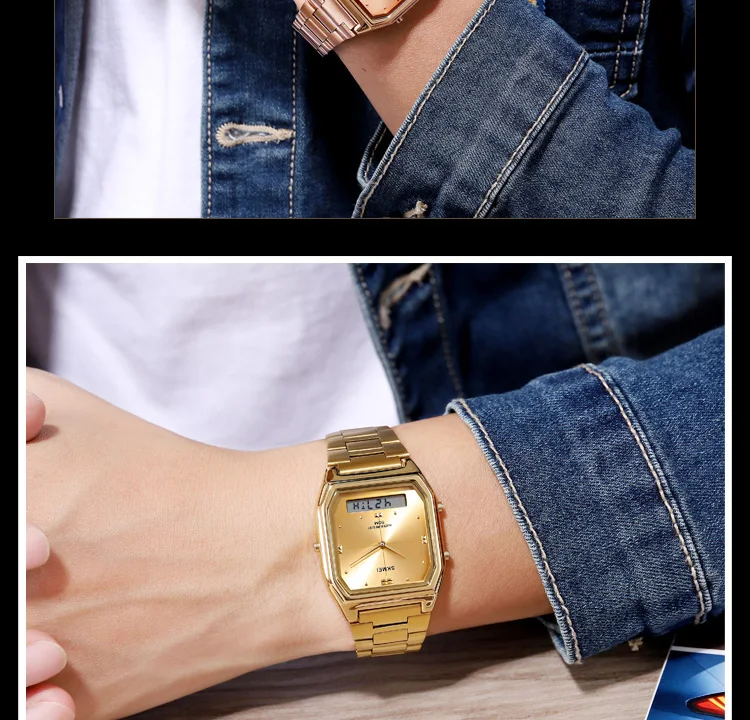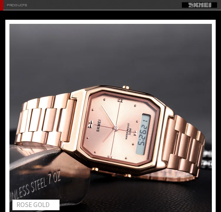 Часы наручные SKMEI Мужские Цифровые, брендовые водонепроницаемые спортивные кварцевые, цвет розовое золото, повседневные